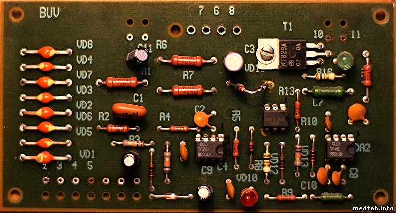 Перебрали плату BUV, включающую эти светодиоды, заменив все три микросхемы (две КР 1006 ВИ1 и оптопару, только вместо АОТ 128А поставили аналог 4N35, заменили ключевой транзистор КТ829А, но тиристорные ключи, команду на включение, всё равно не получают.