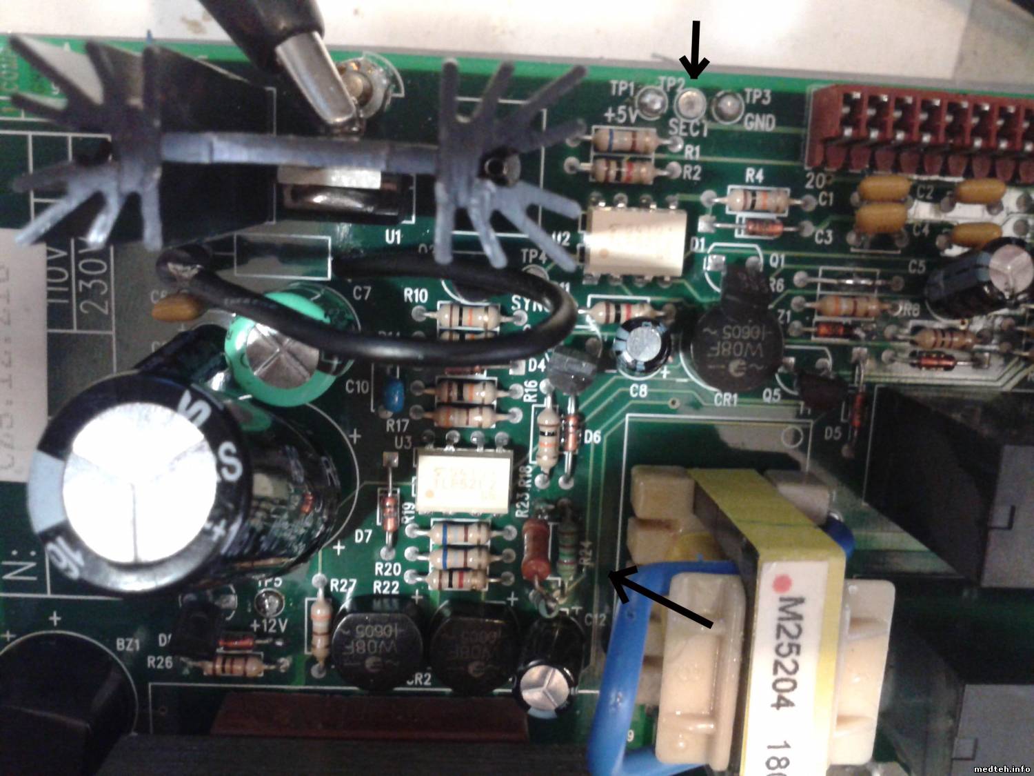 При напряженнии в сети 220V в контрольной точке TP2 (SECT) должно быть ~3,4V, если меньше то увеличивай резистор R23, конечно кондер С12 должен быть хорошим. У меня было 3,2V, что соответствовало минимальному напряжению работы аппарата 245V. Я добавил 3 kOm. Причина такого скачка осталась тайной. Удачи yes