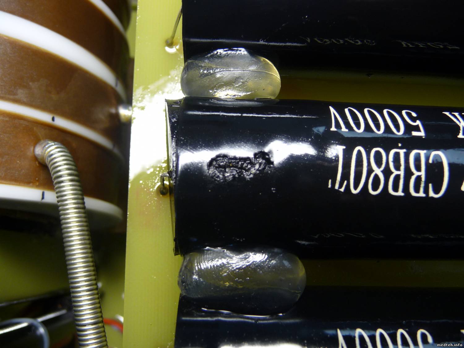 abcdif, Из моей практики: питающее ProVario,периодически пробой по высокому ,защита срабатывать не успевала (разлетался входной предохранитель). Вскрывались и излучатель и генератор. Оказался пробой в излучателе ,с анодного кольца трубки на корпус катушек разгона анода ,в защитном стакане (пластик) была конкретная дырка. Исправили ,собрали. В генераторе разлетелся один из конденсаторов ,поставили перемычку ,заменили масло. При калибровке в районе 70 kv 300 ma ошибка 403. На контрольных резисторах сигналы различались в 2 раза. Снова вскрыли генератор. Диагноз – обрыв вторичной обмотки (одной из катушек. Их там две). Медики думают.