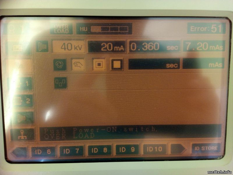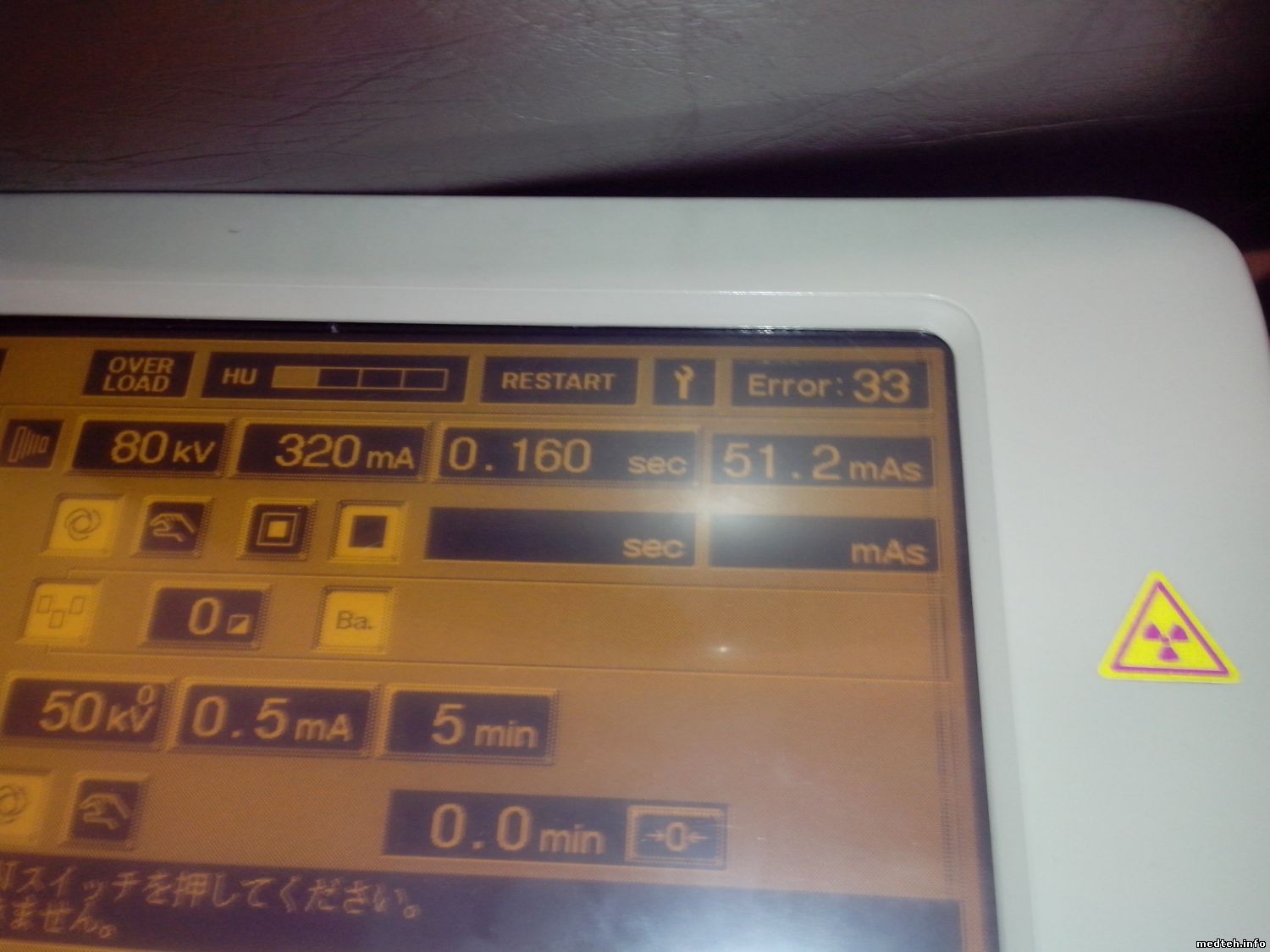 При нажатии кнопки экспозиции выдает малый ток, на табло появляется E 50/63. Отпускаешь кнопку - ошибка исчезает, и снимок получается с левыми данными, не соответствующим действительности. На скопии ситуация лучше, но иногда бывает, что снимок тоже проходит через раз.