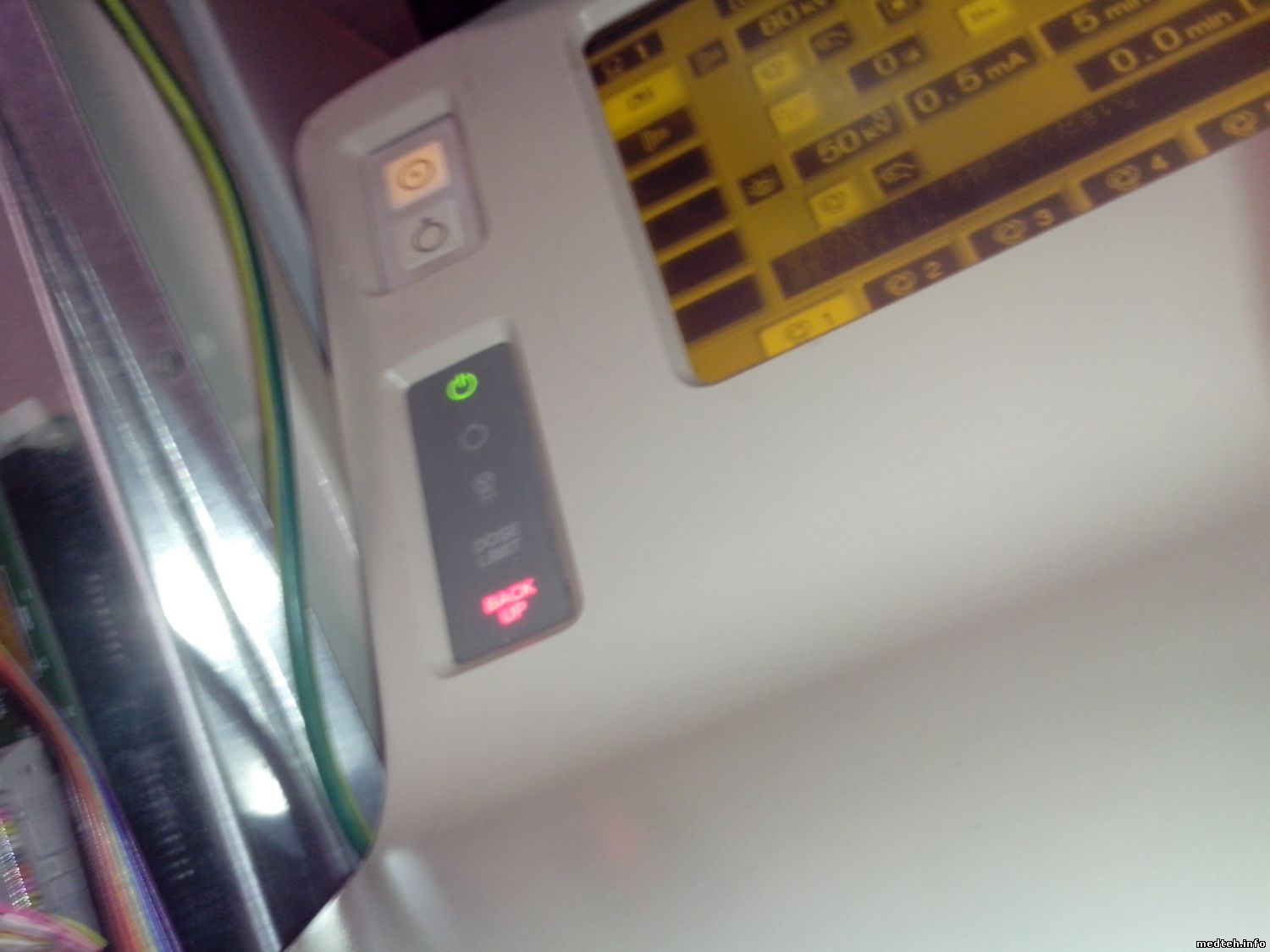 Имеется ввиду выносной ручной переключатель с двумя положениями: 1. кнопка готовности к экспозиции и 2. кнопка генерации рентгеновского излучения. Второе положение то работает,то нет.
