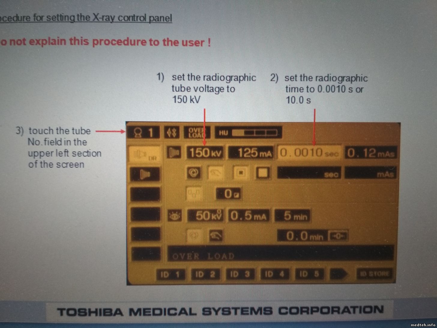 Tuwer, Здравствуйте. При автоматической калибровки рентгенографии, аппарат должен производить калибровку на большом и малом фокусах и на 50,60, 90, 120 кВ на всем диапазоне токов ( при чем в обоих случаях, до начала калибровки нужно выставить на минимальный ток). Процедура занимает не мало времени. В вашем же случае, возможно включен экспонометр (AEC) при калибровке их нужно отключить. Также первоначально нужно выставить 50 кВ и время 0,08 с.