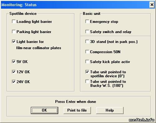 При этом: не позволяет: выставлять параметры снимка в стандартном и томо- режиме, делать снимок в стандартном режиме и томо- режиме, опускать стол(стоит под 89 градусов);
