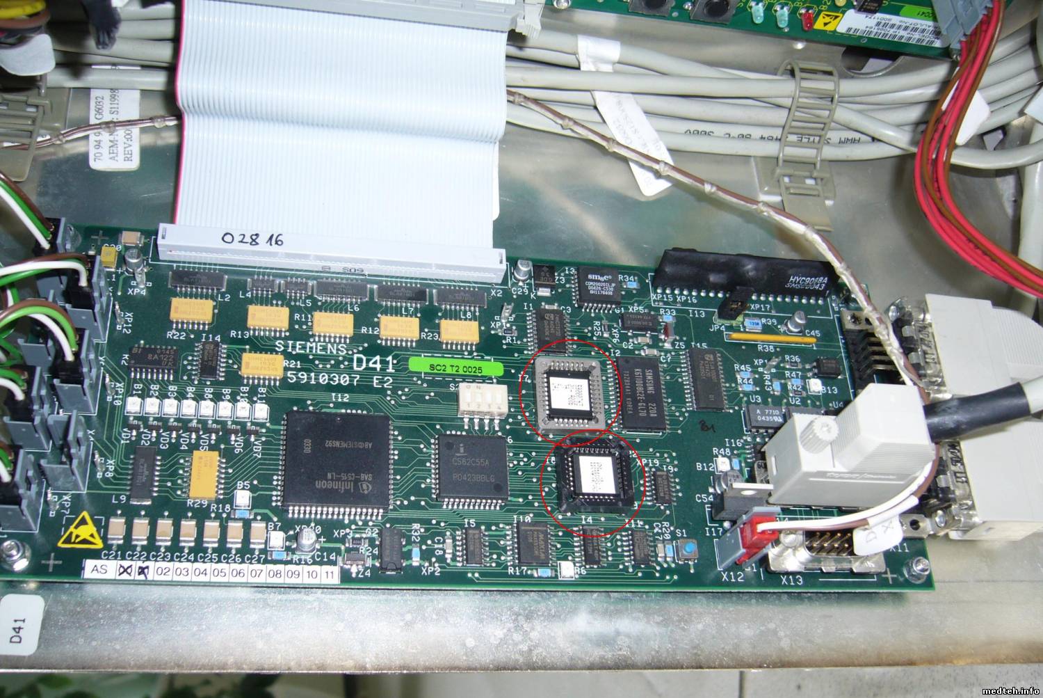 Выкладываю фото. Есть еще один момент. Управление U5 идет с платы D41 (на фото 7800718.jpg отмечено стрелкой) и D31 (соседняя), а U6 - только с D31. Плату D41 я проверил, поменяв с такой же. В аппарате есть еще одна, но функции другие. При этом пришлось менять микросхемы (на фото 3305585.jpg отмечены кружками). Вот эти микросхемы меня и смущают. Возможна одна из них вышла из строя.