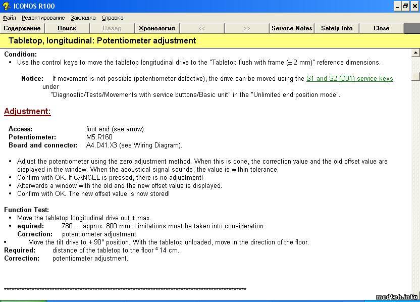 Столешница... Столешницей управляет U6. Влево-вправо (относительно корпуса пациента) столешница ходит. Вперед-назад нет. При управлении с пультов звучит писк. При длительном нажатии на пульте появляется ошибка 256/032 (0695024.jpg). При переходе в режим управления с D31 (кнопками S1 и S2) движения не происходит, но U6 выбивает (загорается красная лампочка).