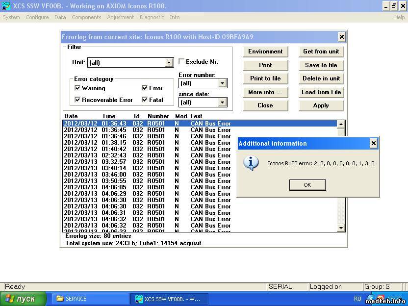 Добавляю листинг ошибки и Error log Environment из XCS SSW, откуда он взят. Также добавляю окна и их содержимое раздела Monitoring из ICONOS R100 Service Software.
