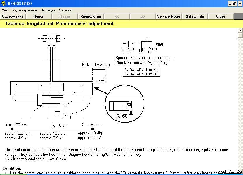На основе R200 могу сказать, что там два синхронных движения (трубка и кассетоприемник) относительно стола для обычного режима и не синхронное для томографии. Потенциометры должны быть выставлены на одинаковое положение (напряжение) с точностью 100мВ. И линеаризация должна быть откалибрована. Возможно надо эту процедуру повести?
