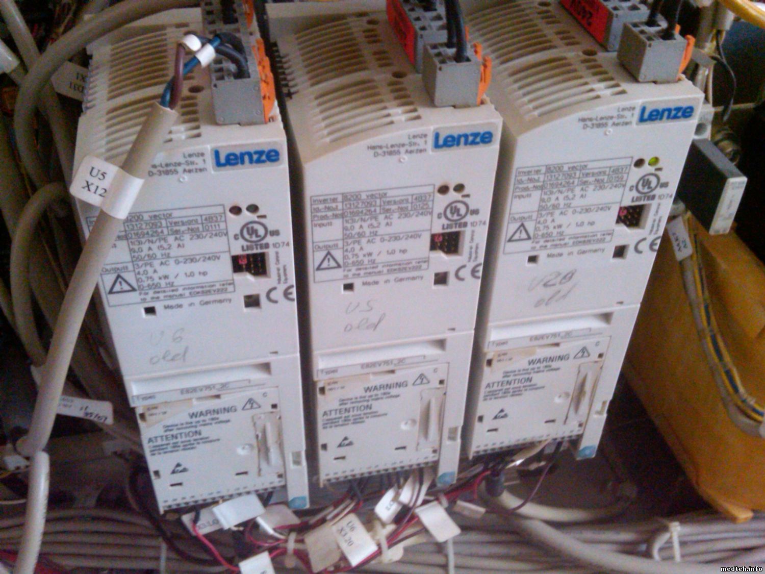 Похоже, меняли местами Lenze U5 и U6. Зачем? Возможно не вы. Тогда кто? Посмотрите откуда питание приходит на Lenze. Если не ошибаюсь, зеленые светодиоды на них должны гореть.