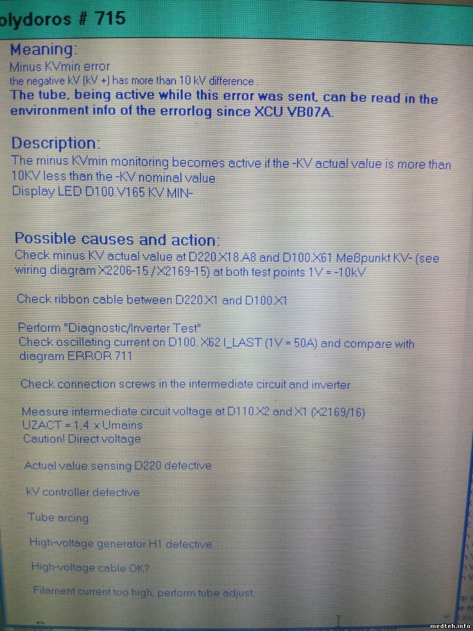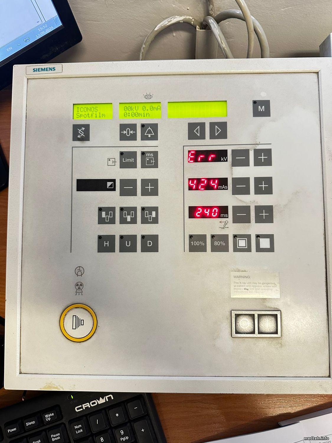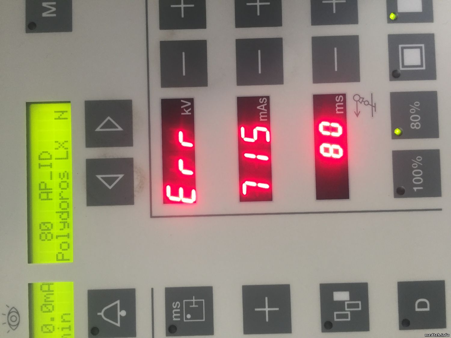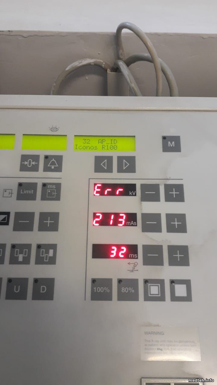 На аппарате AXIOM Iconos R100 от бренда "Siemens" не проходит высокое напряжение, работало и перестало работать внезапно, раньше пробои не наблюдались, постоит определённое время, то иногда снимки проходят на режиме 70 кВ 25 мАс, не более 2-х снимков проходит, а когда перестаёт, то и на 40 кВ 1 мАс не работает. Пишет ошибку.