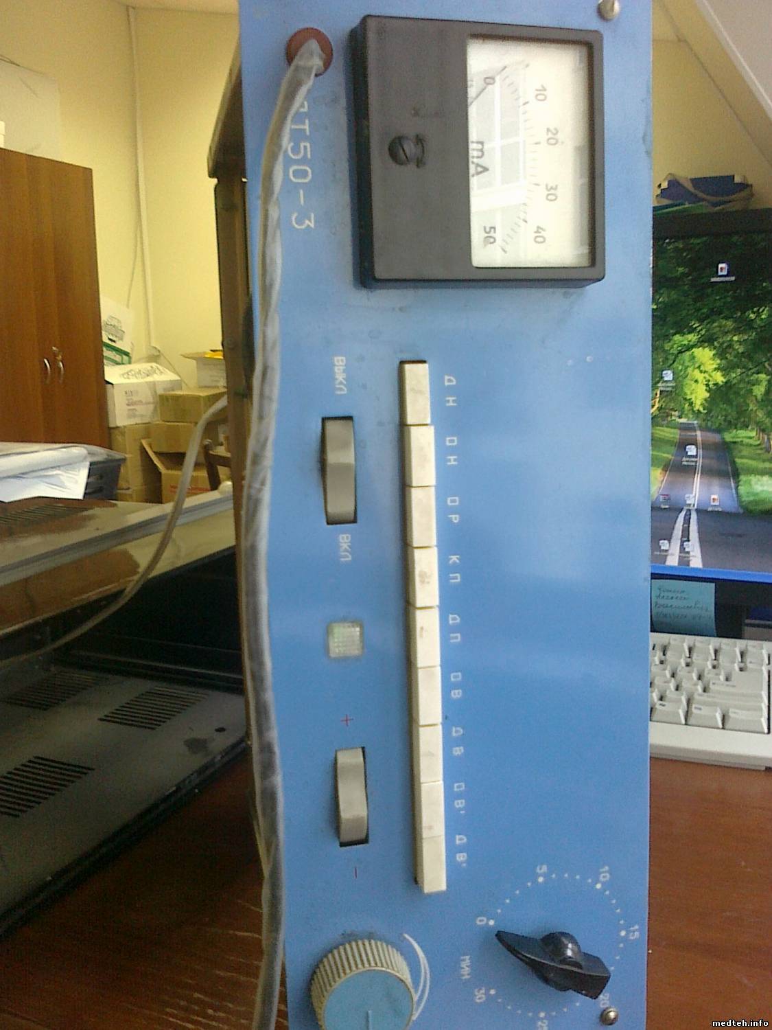 Guest150, Вам респект. Я смотрел фотографию, но как то не обратил внимания на положение регулятора. В этом аппарате помнится еще есть защита от резких бросков тока в цепи пациента. Порог срабатывания её регулируется потенциометром.