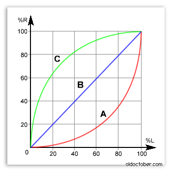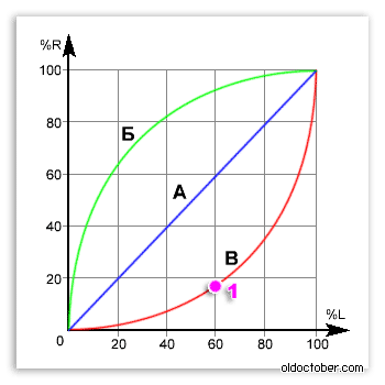 Я тоже сталкивался с потенциометрами группы А в Амплипульсах. После чтения описаний на импортные потенциометры выяснил, что импортная группа А соответствует отечественной В.