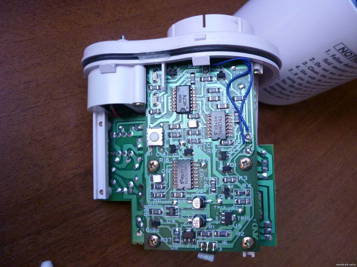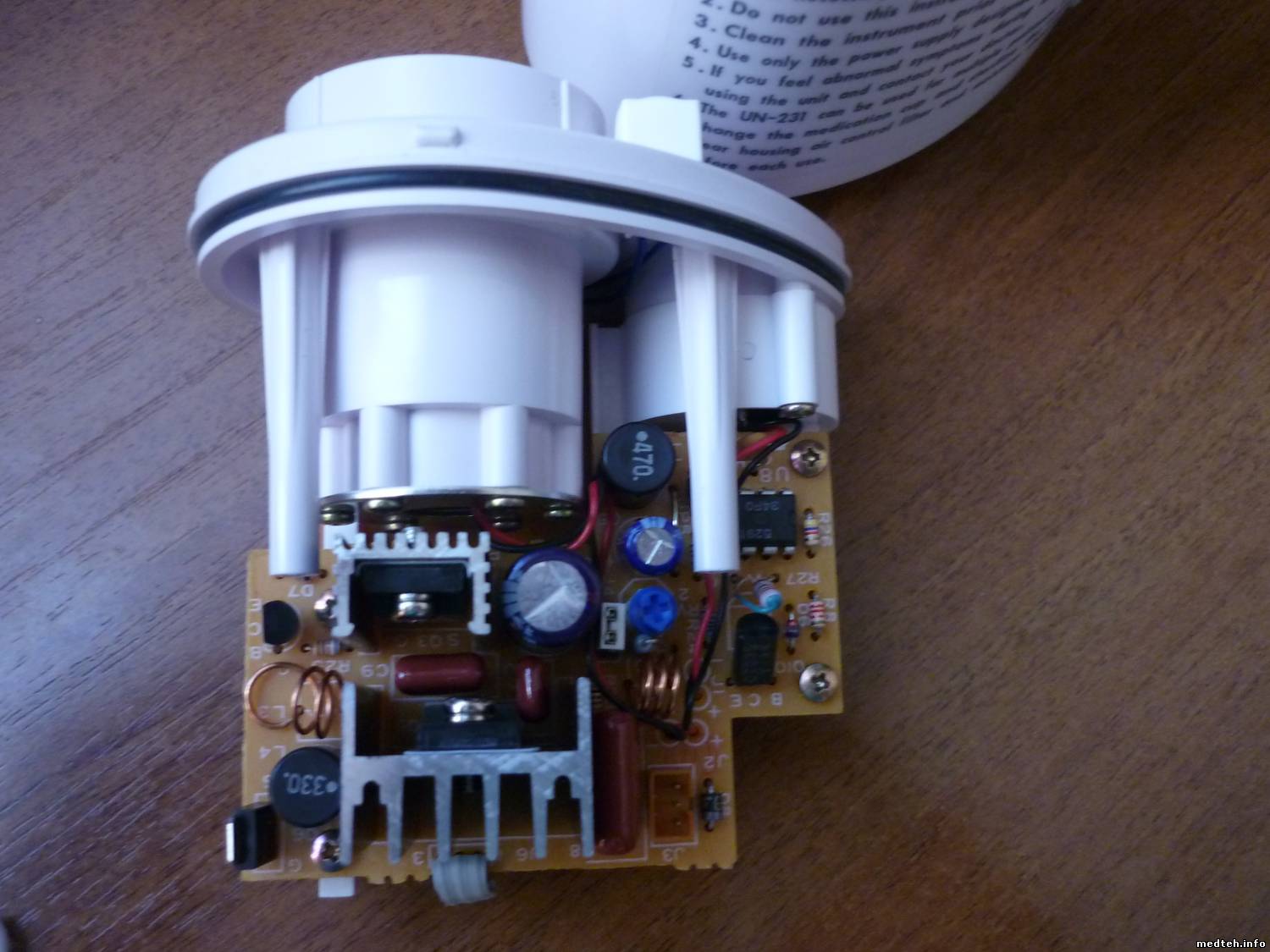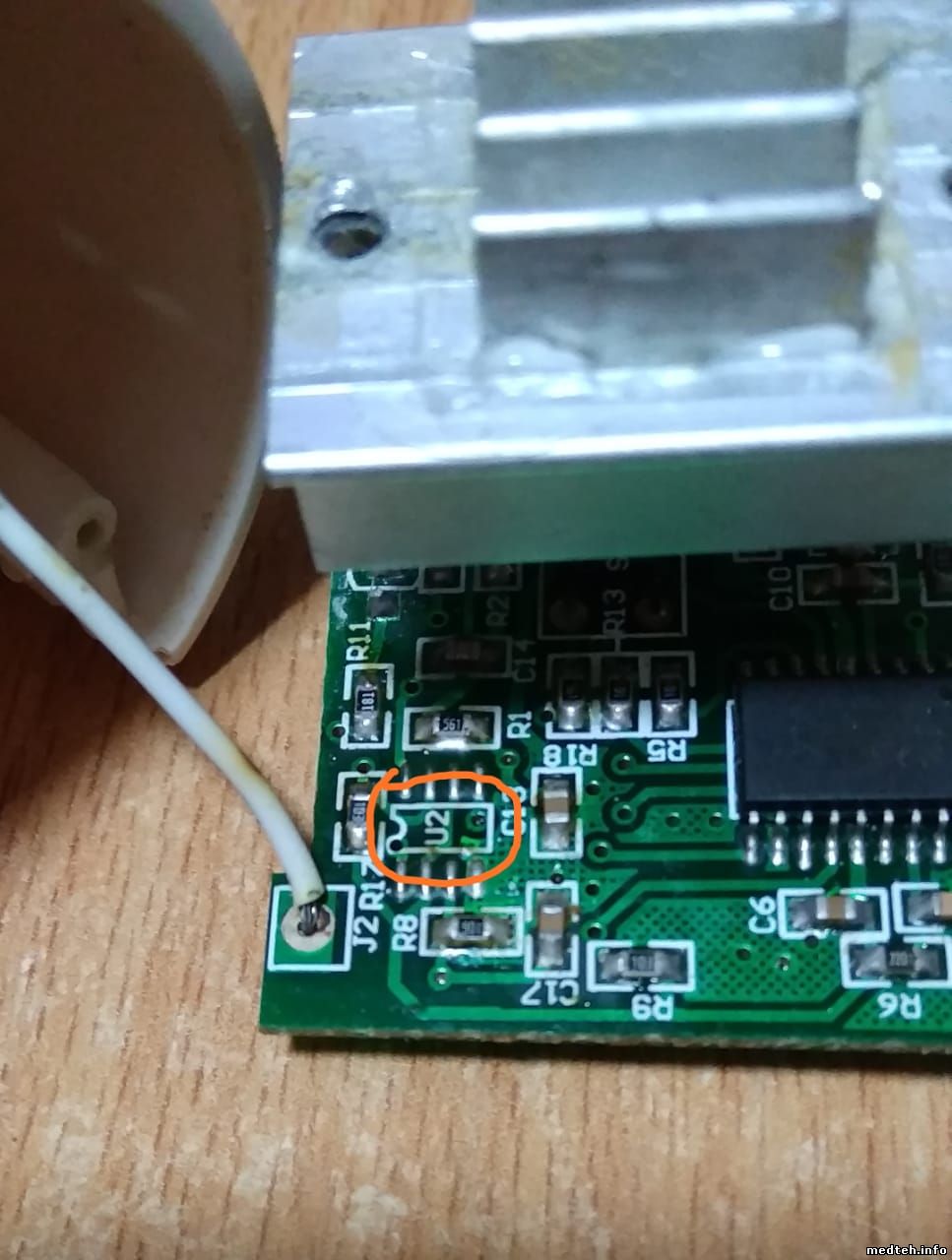 Доброго времени суток, уважаемые форумчане. Небулайзер UN-231. Помогите опознать деталь, которая разрушилась, подозреваю от КЗ по питанию. На плате она обозначена как U2. На самой детали удалось рассмотреть под микроскопом только начальные буквы LM.