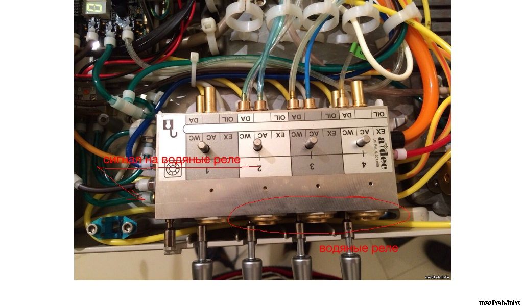 За подачу воды на наконечники отвечают реле ( обозначены на второй картинке ).
