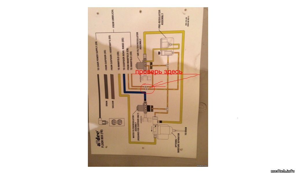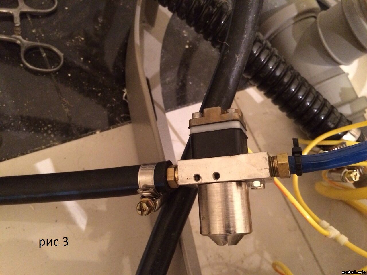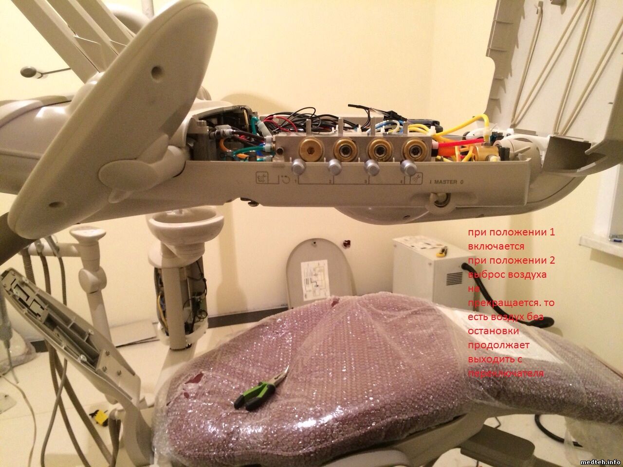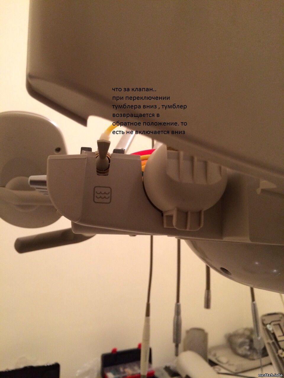 клапан воды на входе тоже не работал, и поэтому не шла вода на раковину. управляющий воздух не мог толкать пружину. в общем в следствии продолжительного отсутствия работы на кресле, все привело к залипанию всех водянных реле и клапанов