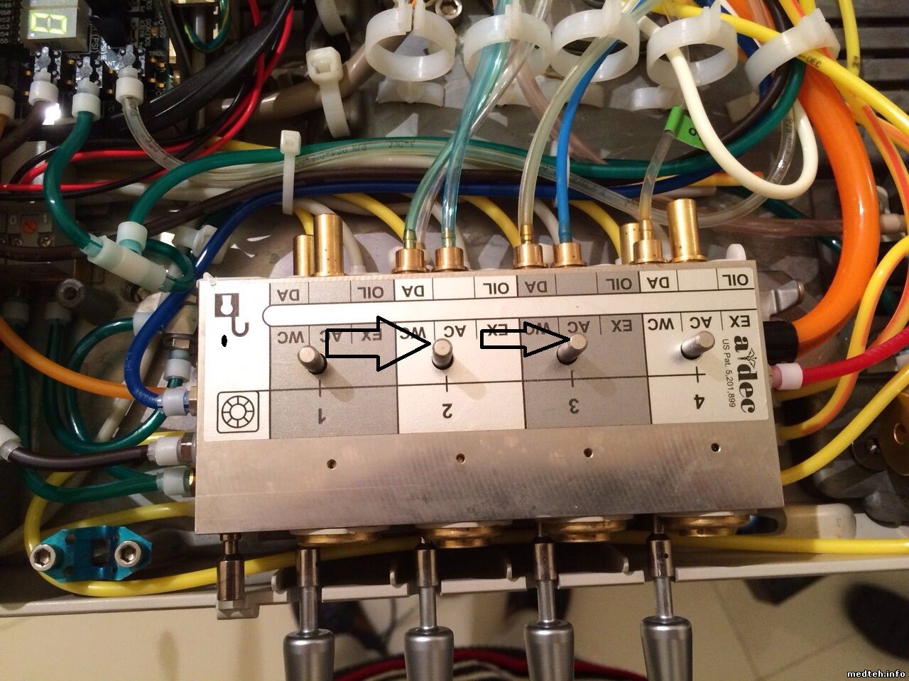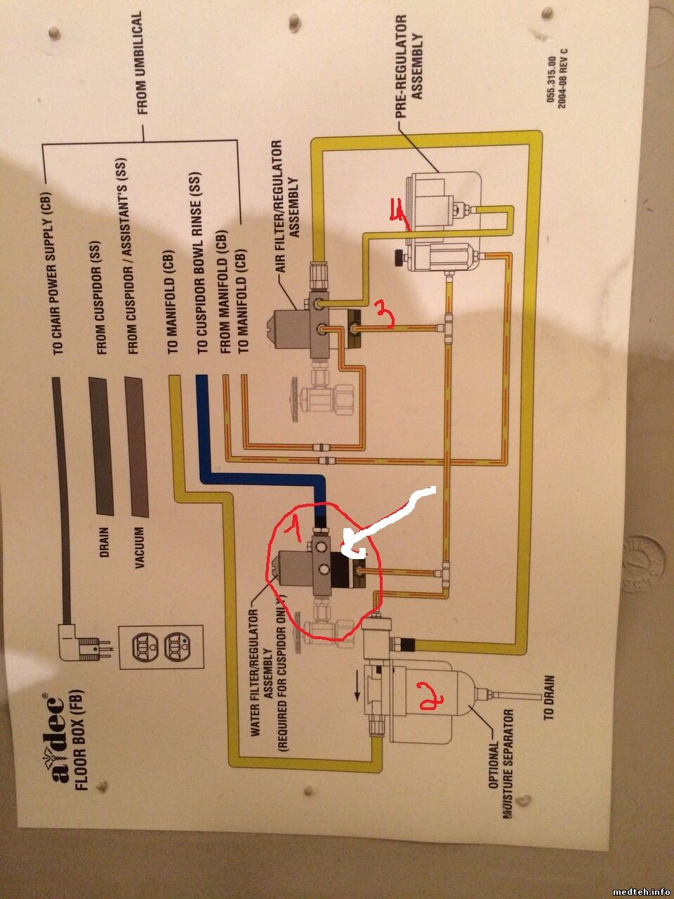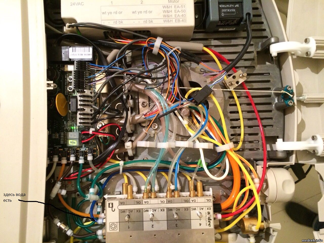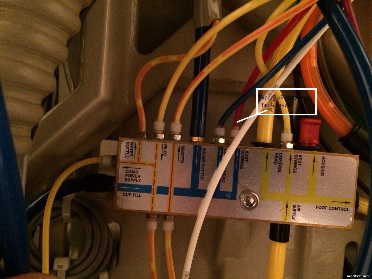 клапан воды на входе тоже не работал, и поэтому не шла вода на раковину. управляющий воздух не мог толкать пружину. в общем в следствии продолжительного отсутствия работы на кресле, все привело к залипанию всех водянных реле и клапанов