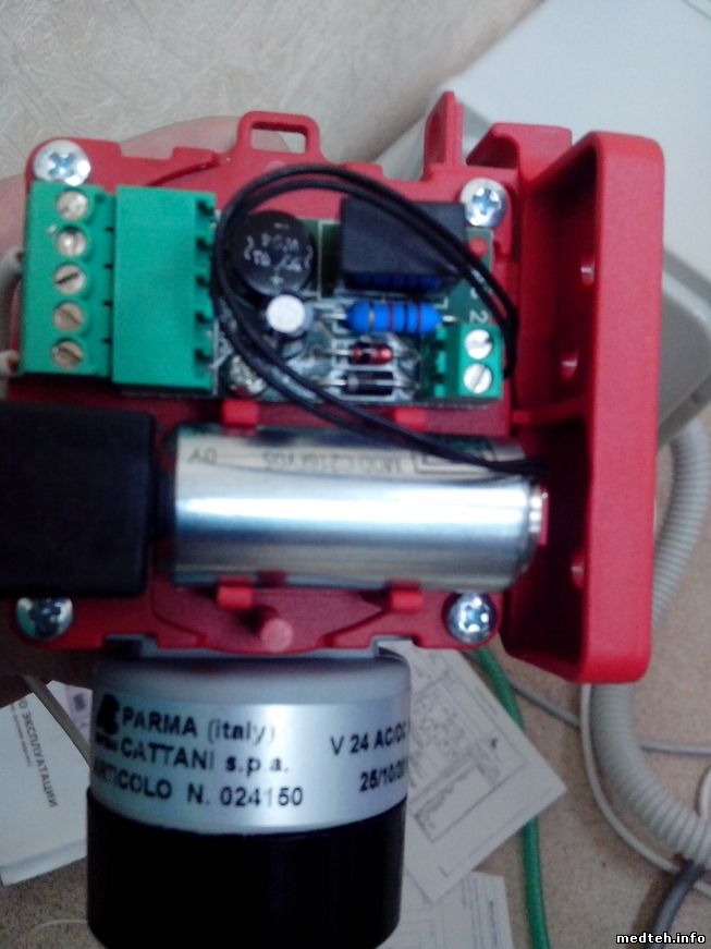 Пришли две стомустановки Coral Lux и Midway NG со встроенными сепараторами. Надо подключить клапан Parma Cattani что бы можно было работать от существующей больничной системы сепарации. Вместо имеющейся вакуумной помпы,пришедшей с установкой. Питание клапана ~24 вольта.