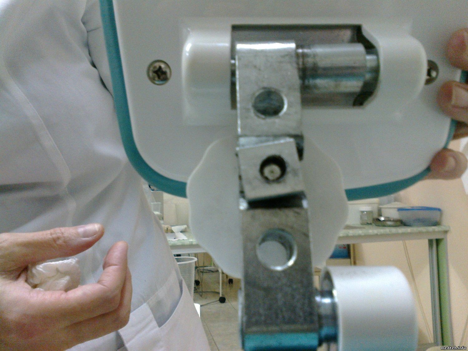 вот фото гайка затянута, почти полное прилегание гайки к своей плоскости значит и нажимное усилие больше .. а на первом фото http://www.medteh.info/_fr/108/0744037.jpeg видно не полное прилегание гайки к своей ложе хотя и не зажата но при зажимании она так же не сидела в ложе ..сейчас явно когда откручиваешь лапки разжимаются..думаю вопрос решен.
