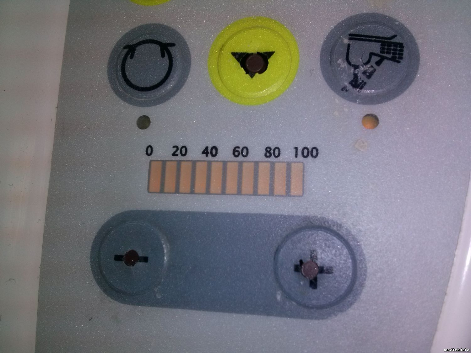 Здравствуйте! Помогите разобраться с регулятором оборотов микромотора. При нажатии кнопок + или - индикатор показывает или максимальные или минимальные обороты.Нет плавной регулировки.Схемы нет