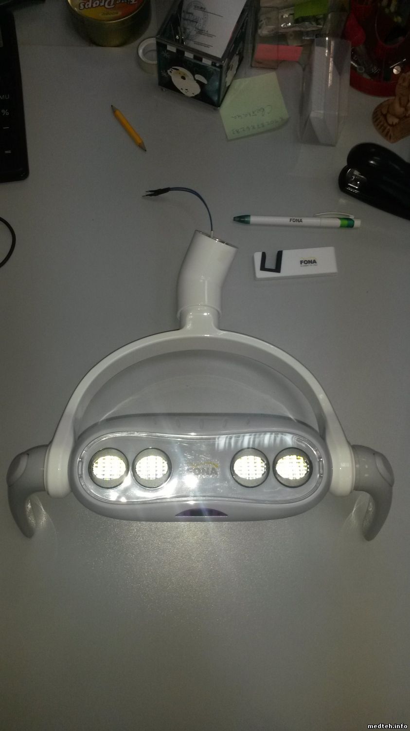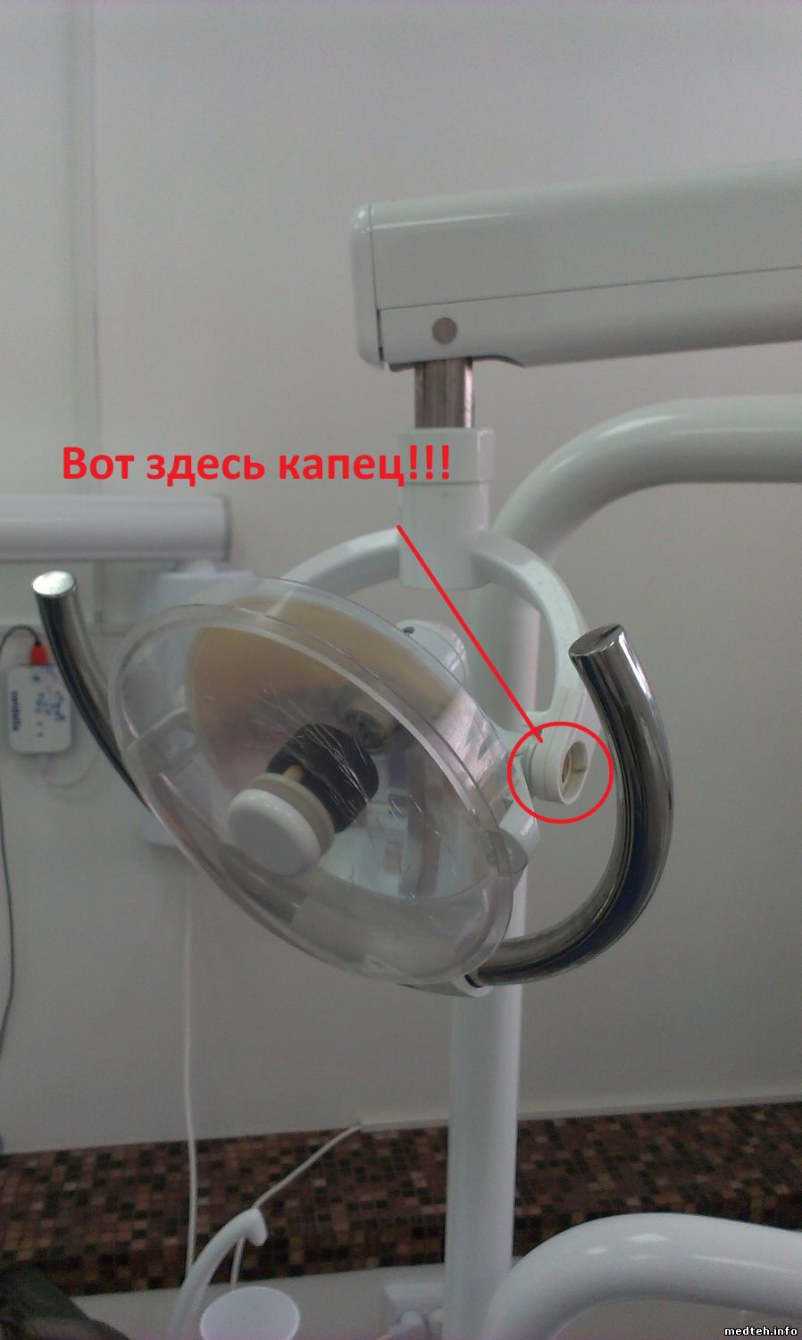 Хитрые китайци сделали так что лампа крепится на втулку на плече установки 25мм. А у светильников СОХО и WeuvDent втулка 22мм и вмонтирована в светильник.
