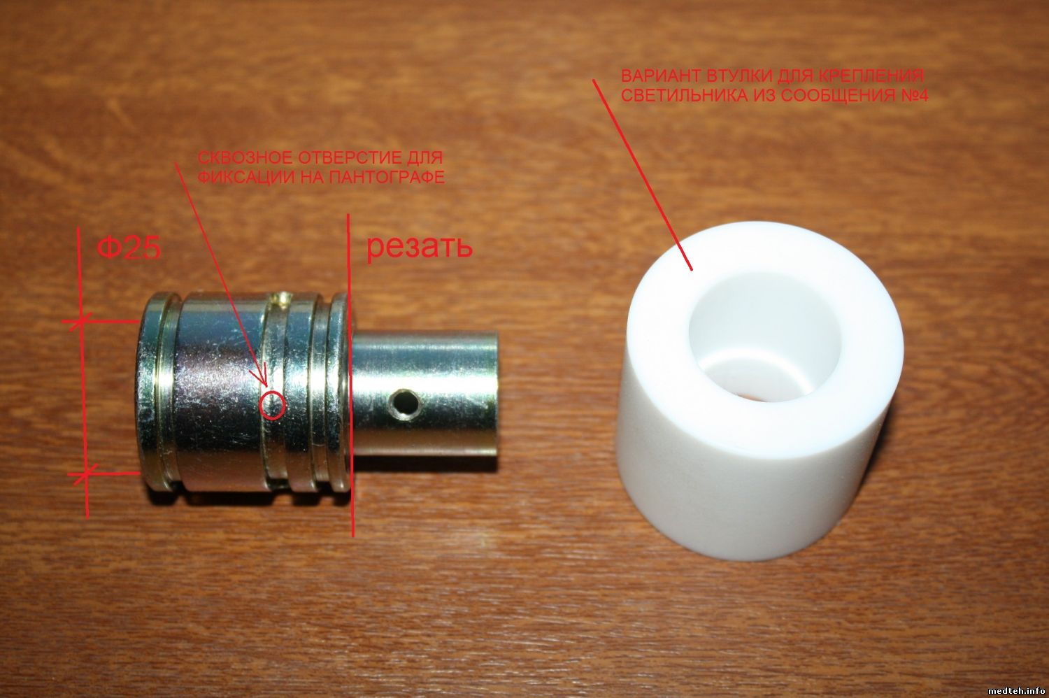Для VIEWDENT можно сделать проще. В родном креплении режем выступающую часть Ф22 мм и протачиваем внутреннее отверстие под "папу" ФОНЫ ( 25 мм ) ЕМНП пройти нужно 2-3 мм, далее идёт как раз нужные 25 мм Для крепления светильника из Сообщения №4 кроме переходной втулки похоже вариантов нет. Её можно лишь уменьшить в высоту, подрезав "папу" Ф22 мм. Миллиметров пять можно выиграть.