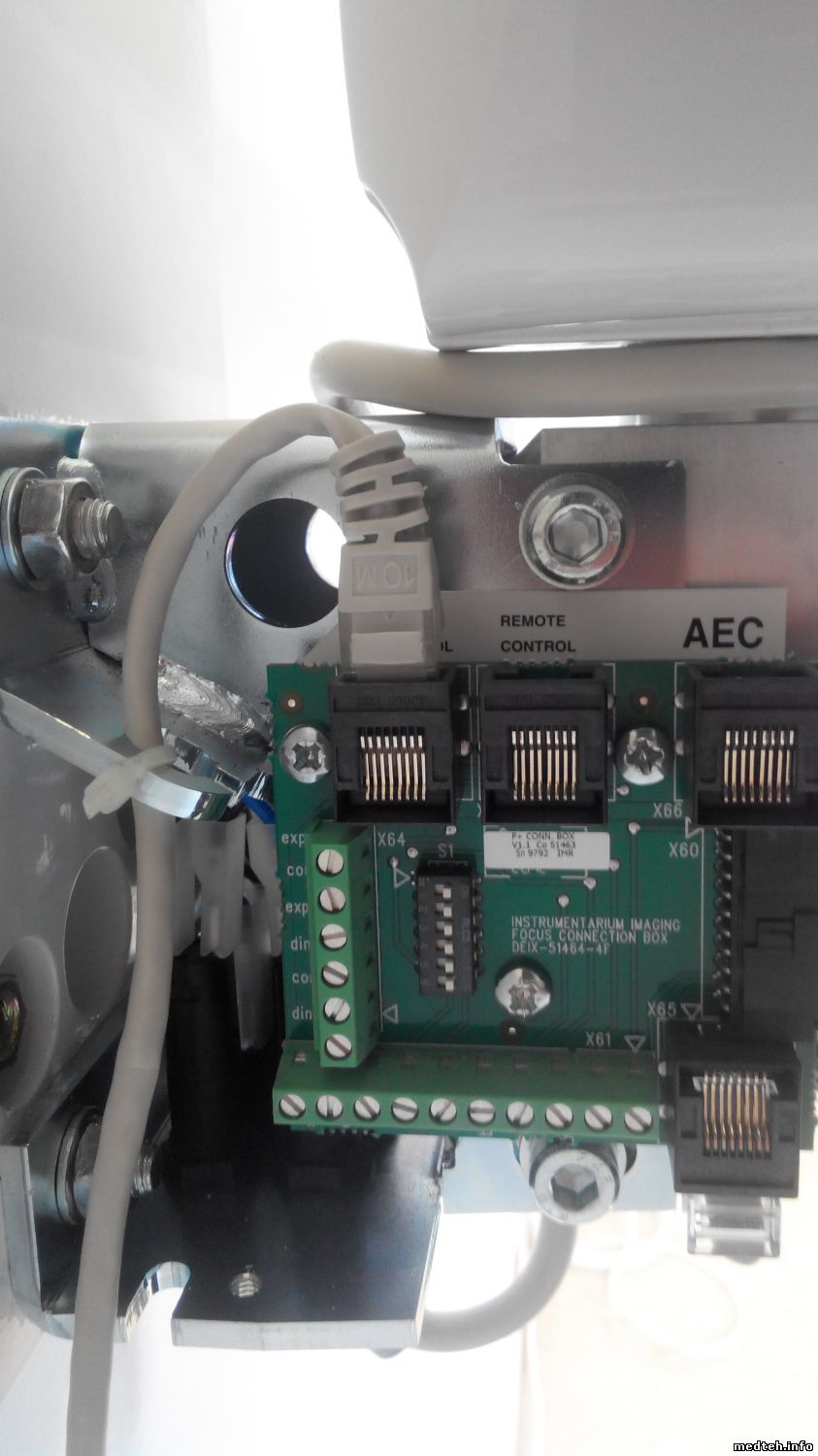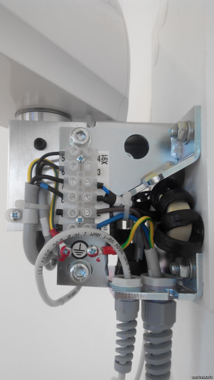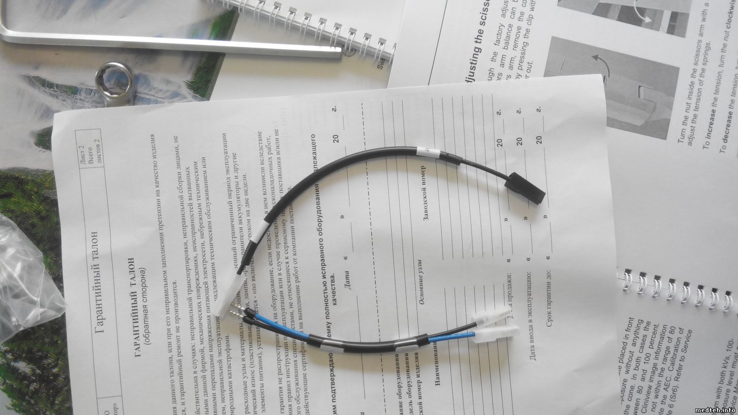 Не понятно для чего эти два провода со штекерами. Есть предположения что они для перевода аппарата на 110 вольт на входе. Они были отдельно в коробке.она показана в инструкции. Ещё отсутствовало дополнительное настенное крепление что позволило бы перенести рентген на другое место без демонтажа основного блока. В коробке его не было. Это железная пластина для дополнительного крепления.