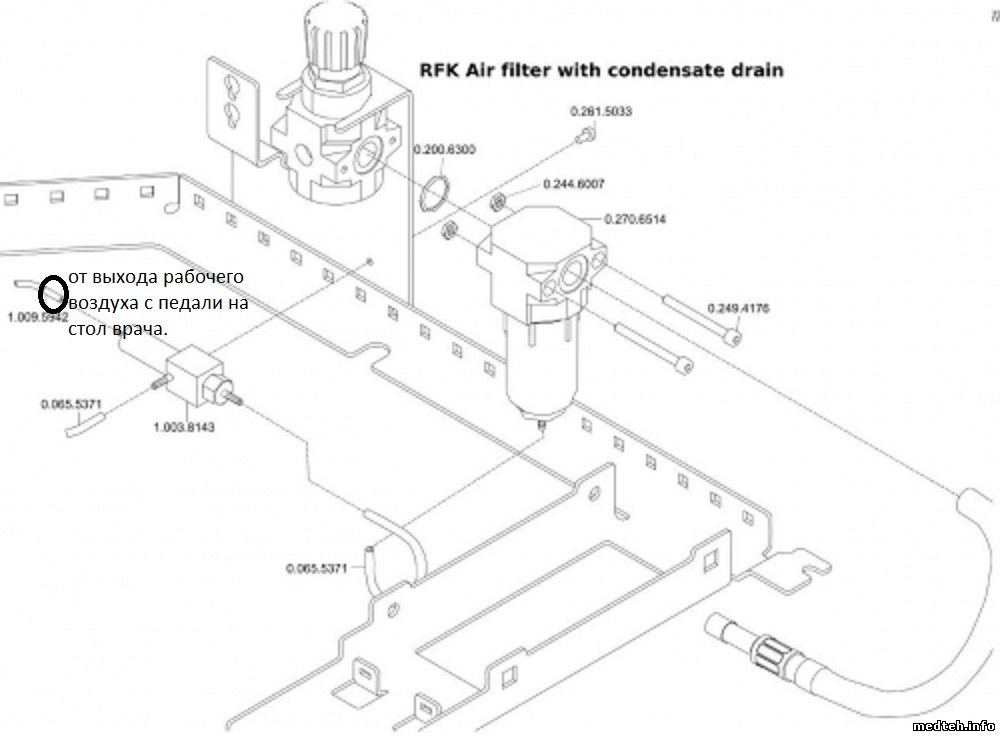 Здравствуйте. Проблема с KaVo Unik: рвёт трубку , которая идёт от осушителя к автодренажу. Обслуживающая организация по телефону не смогла пояснить где искать. Я понимаю, что лучше подождать, но они не раньше чем через неделю смогут, т.к. более 100 км ехать. Автодренаж вроде бы обычный клапан, но почему вдруг перестал работать? Никто не крутил подачу воздуха. Хотя по рекомендации техников я на четверть уменьшил сейчас, завтра посмотрю хватит ли мощности турбины. и ещё через этот сброс конденсата постоянно травит воздух. В чём может быть причина, подсела пружинка в этом клапане или дело в педали, т.к. давление, как я понимаю выравнивается в клапане за счёт педали.