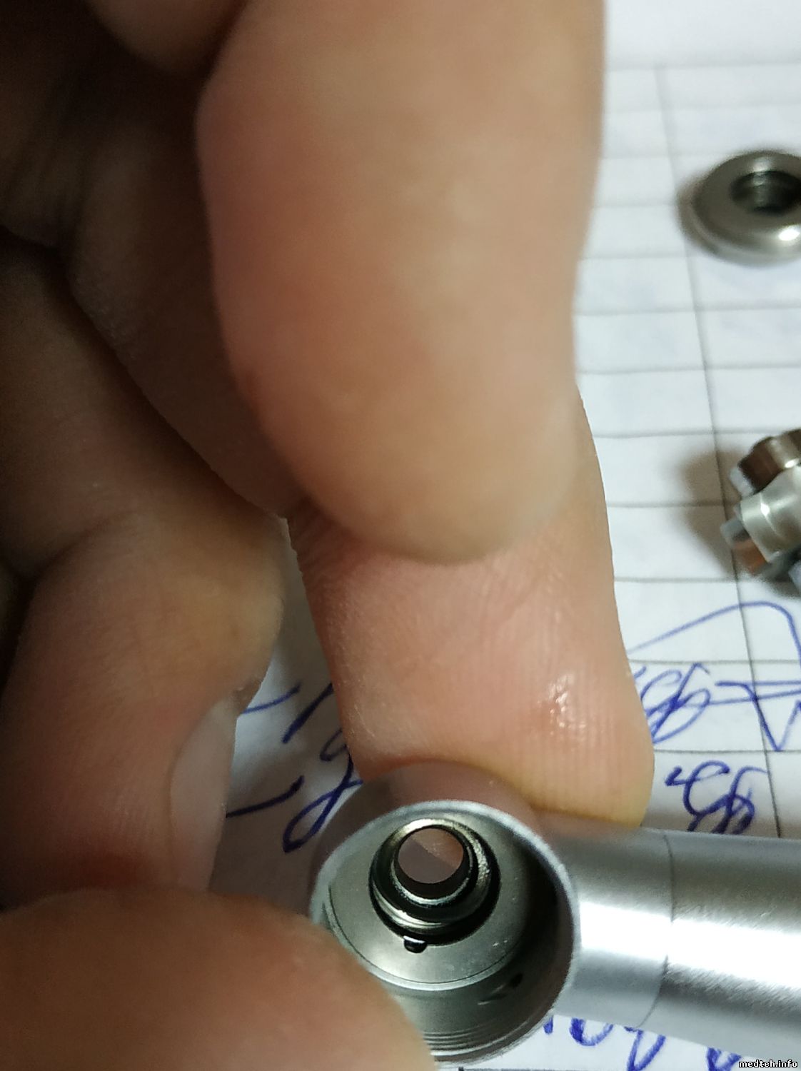 Добрый день. У меня такая проблема с наконечником. Беру смазываю через малое отверстие, вытягиваю ротор и там всегда есть какая то грязь. ЧТо это плохая очистка или проблемы с подшипником? Отмечается нестабильная работа наконечника, падают обороты при работе. Давление вроде норм.