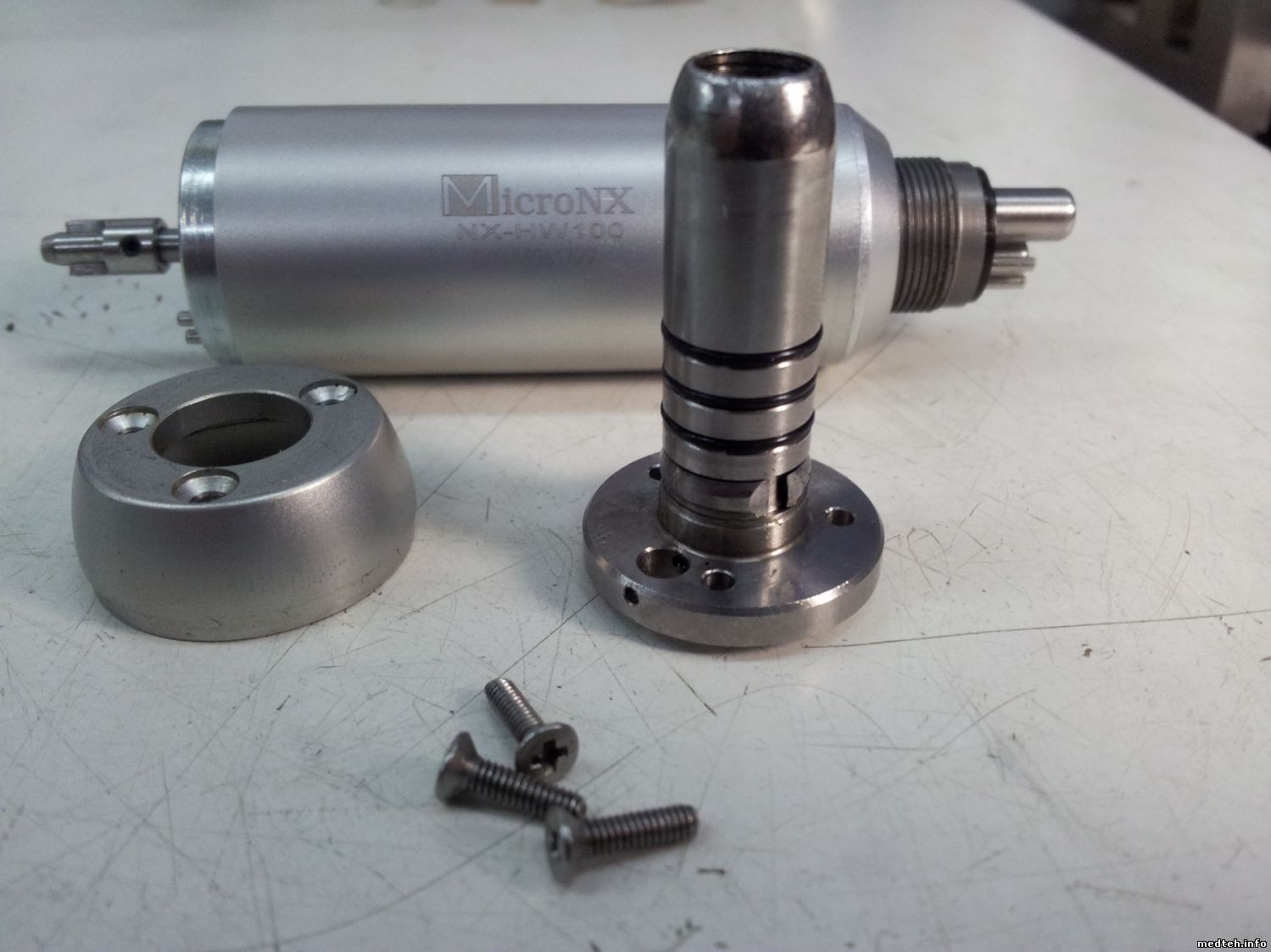 Приветствую коллеги, микромотор разобрал, советы astra и МастерБаку помогли, сильнее придавил внутреннюю часть со стороны трубок и открутил кожух в сторону коннектора присоединения к шлангу, там в кожухе есть проточка, в которой кожух вращается на корпусе, когда пройдет резьбу (я так понял ). Ротор и щетки в масле и щеточной пыли, помою и пусть работают дальше... Astra и МастерБаку, спасибо, плюсики улетели.