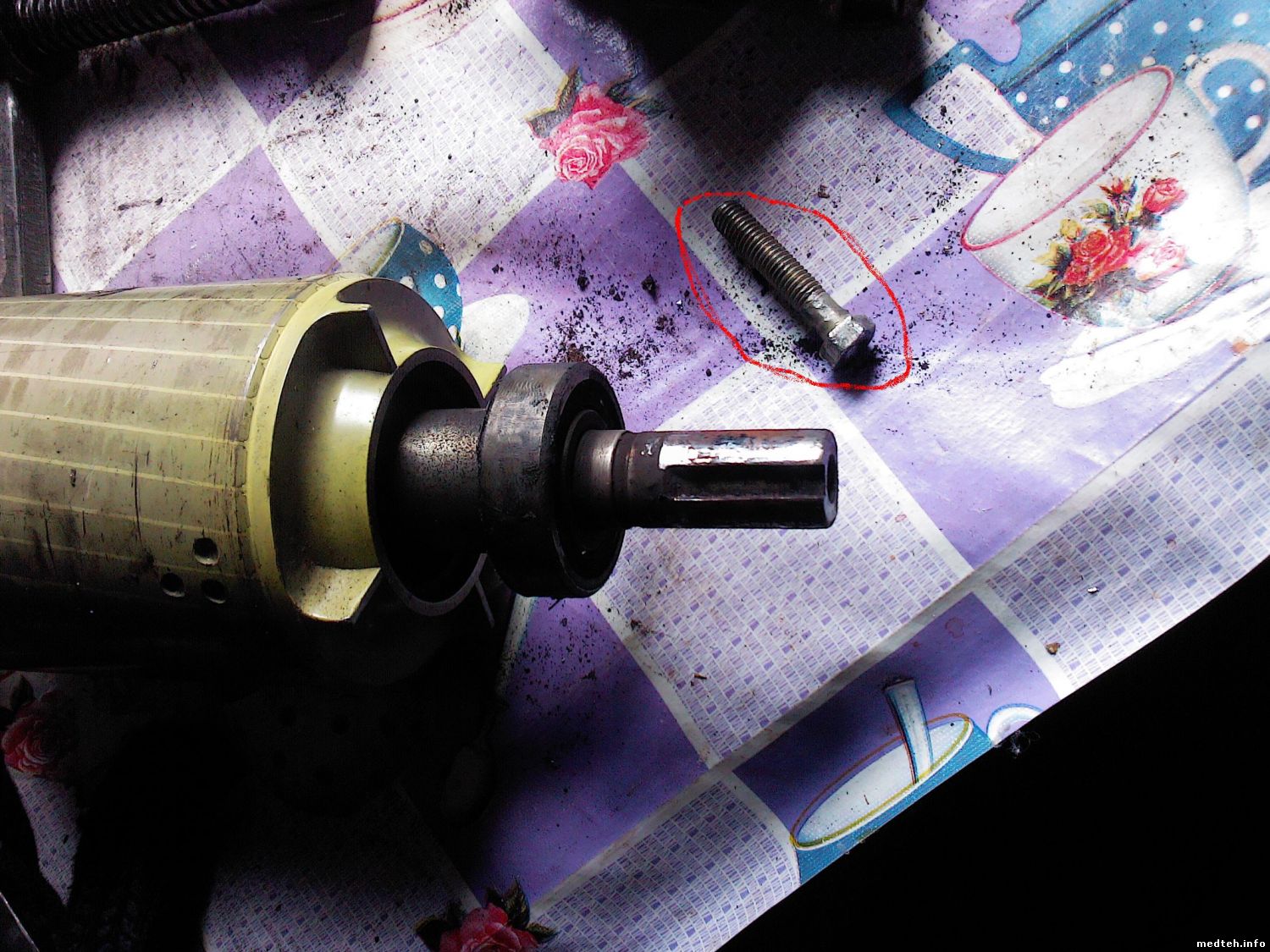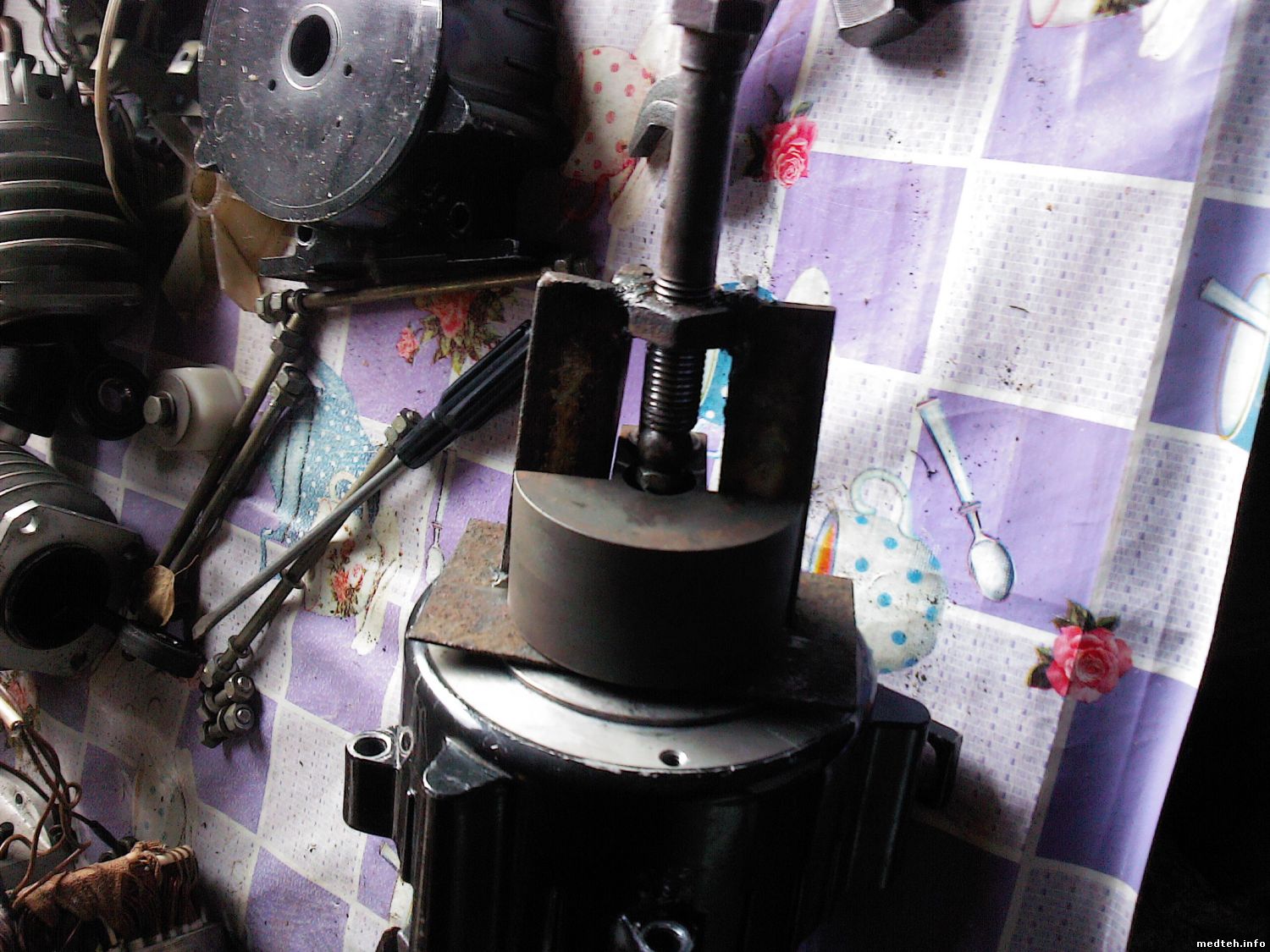 Texnikims, Руприхт, МастерБаку, Ну вот выкладываю фотоотчёт, всё таки шпонка час работы по изготовлению съёмника, и никакого пива, трезвость норма жизни dance2 yes красным обвёл для уточнения, ибо болт не калёный, лучше поставить прокладку ввиде трубки, т.к. просто давить на вал никак, только через болт... biggrin совсем забыл добавить, стар стал забывчив, короче не зря снимал, передний подшипник в хлам yes