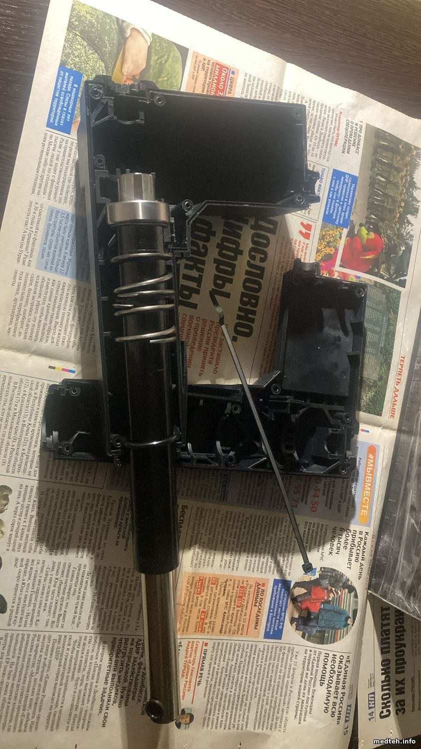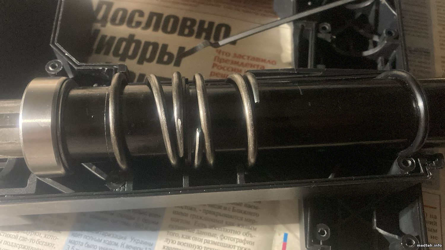 Здравствуйте при вскрытии держал крышкой вниз и все вывалилось ..Наверное с начало надо было здесь почитать.. Теперь вопрос как вставить обратно шток сжав пружины? Всем здоровья.