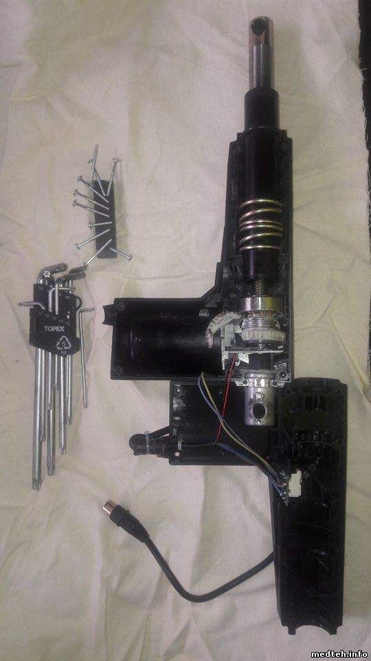 Уважаемый МастерБаку, я только на днях занимался проблемой с приводом подъёма/опускания кресла ... Демонтировал привод, снял его крышку (там саморезы с головкой под звёздочку) и ... нашёл (врачам надо было работать) временный вариант обеспечения работоспособности кресла ... Всё остальное будет по договорённости сделано потом ...
