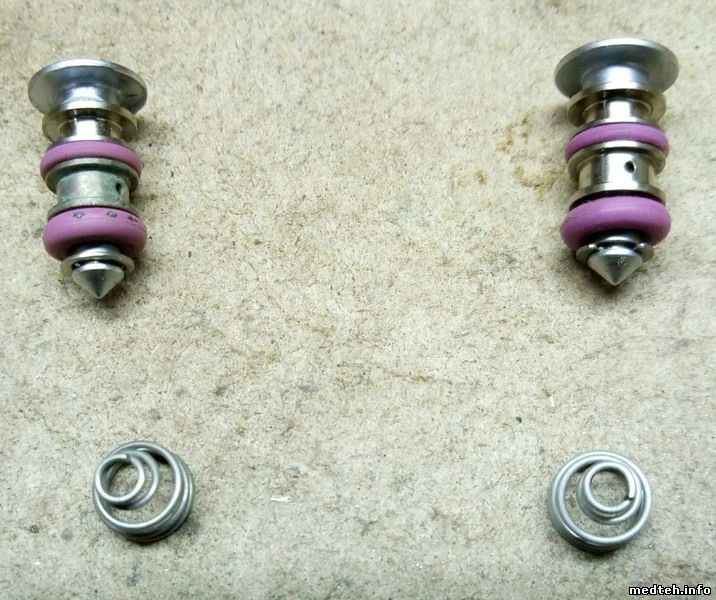 Больница большая, государственная. Раньше ремонтом или обслуживанием стом. оборудования никогда не занимался. Когда проводили последний раз чистку или какое-либо обслуживание этой установки - не знаю. Та кнопка, которая заедала, оказалась сильно загрязнена. Почистил, но сколько проработает - не известно, так как одно из уплотнений картриджа изношено (слева на фото).