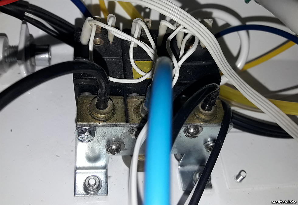 Последнее фото: три электромагнитных клапана. Живу в маленьком городке. Мед.техников специализирующихся на стомат.оборудовании в городе нет. Поэтому и не покупаю установку с более сложной "начинкой". Зову своего друга. Он электрик, правда в автомобильной сфере деятельности. Блок на два электромотора менял именно он. Возможно немножко напартачил.