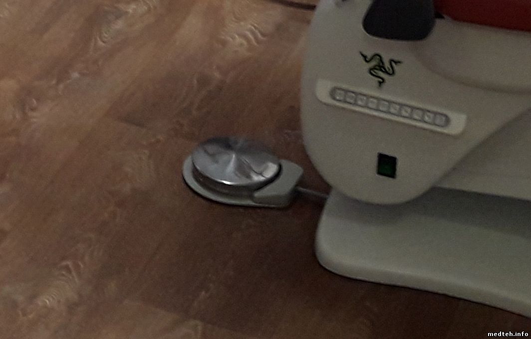 "Satva" T5. Педаль "лягушка" (круглая). Кажется она пневматическая. Может пневматический клапан педали медленно срабатывает? На прикреплённом фото видна и педаль и микромоторы ДПР. Установка такая, но опции панели врача другие: https://satva.com.ua/catalog/satva-kombi-t5/