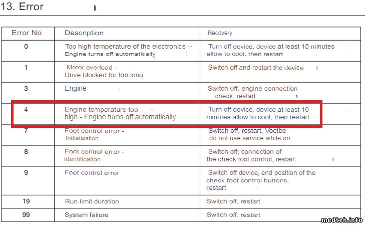 Good day, everyone. Facing problem, the Implantmed SI-95 230 physiodispenser from W&H Dentalwerk Burmoos GmbH, Austria, (the display shows - Error4, What's means that ?