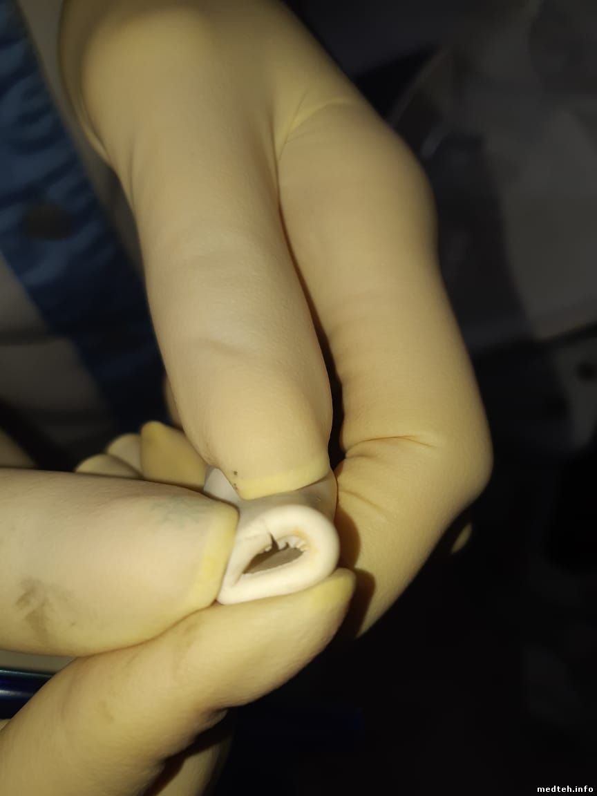 Далее, после 3-4 раз использования слюноотсоса его резинка треснула.
