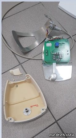 Корпус педали крепится 4-мя винтами снизу педали. Так вот, раз в месяц эти винты откручиваются и принимают на себя всю нагрузку педали вместо ножек, высота, которых пару миллиметров и которые сделаны из силикона. Когда врач перемещает педаль с открученными винтами, то через открученные винты нагрузка идёт на корпус и он разваливается.