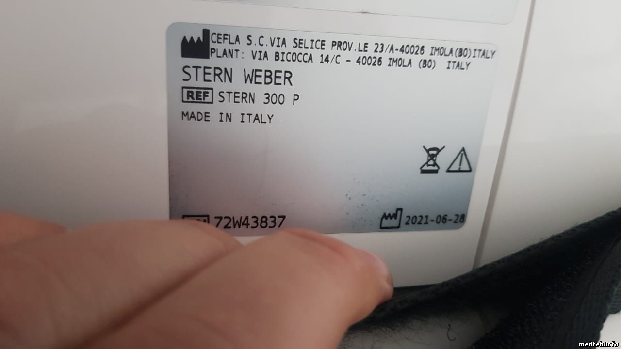 Регистрационное удостоверение ФС № 2005/599 от 26.04.2005 года на Установки стоматологические серии Stern Weber/Stern Weber S модели: 190 Continental, 190 International, 200 Continental, 200 International, 250 Continental, 250 International, 300 Continental, 300 International производства итальянской компании Cefla S.c.r.l. Отменено с 26.04.2015 года.