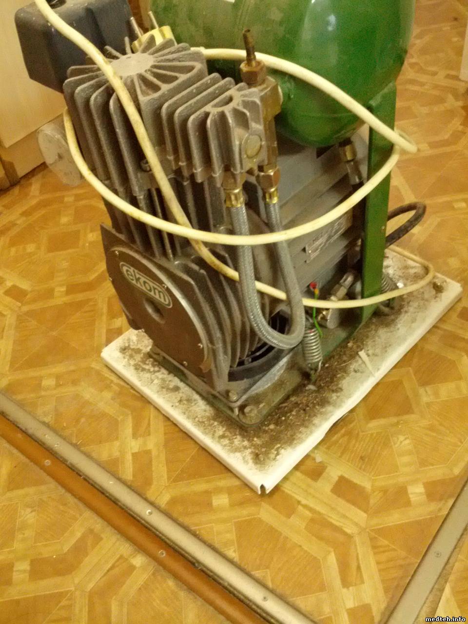 Компрессор как в зиндане,пять лет без проверки и замены фильтра вдоха,полный ресивер воды и шланг слива забит ржой!Умер по причине развалившихся подшипников(оба разом)двигателя.На установке все забито отложениями,давление воздуха на инструмент меньше 2кг,не регулируется.Педаль течет так ,что специально на тряпку ставят.Жесть блин.