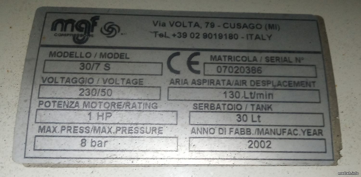 Может кто подскажет где найти документацию на компрессор MGF 30/7 S и запчасти? В хранилище документации не нашел. Фото шильдика во вложении.