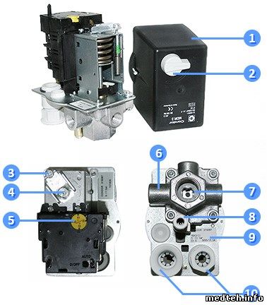 Гайковерт, 3,Регулировка интервала между давлением выключения и включения 4,Регулировка давления выключения 5,Настройка теплового реле тут явно отключение по току и моё предположение.