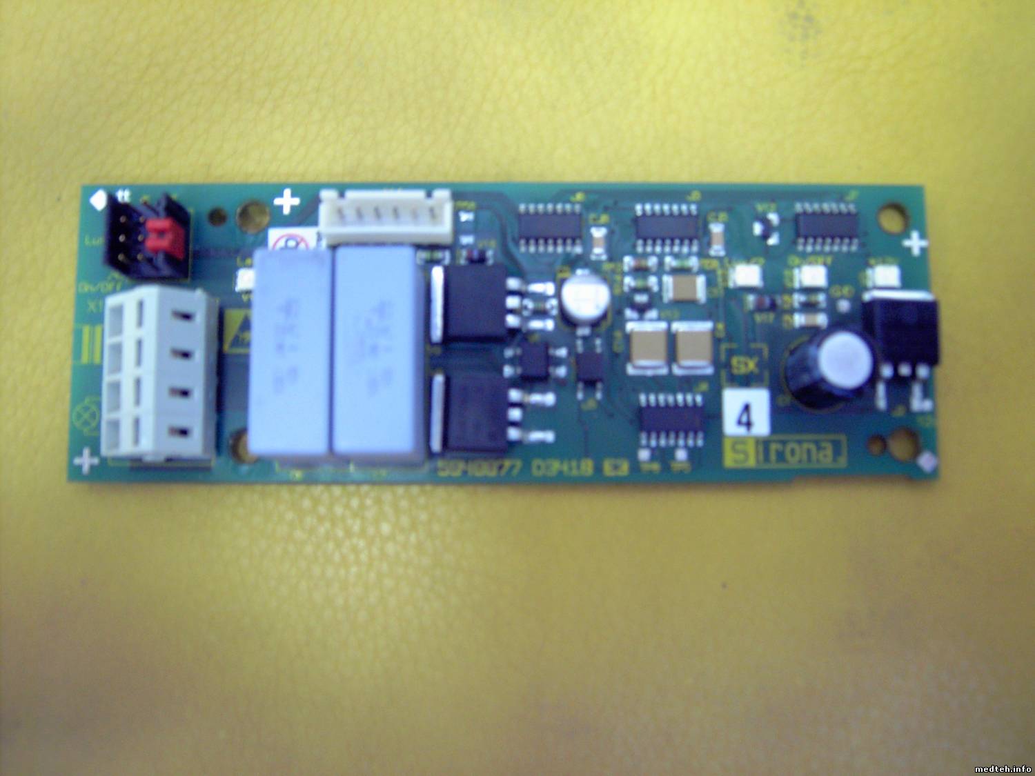 Добрый день. По случаю мне подарили неисправную плату от стоматустановки Sirona модель C8+. Неисправность заключается в следующем: короткое замыкание на входящих клеммах. Визуально никаких косяков не видно. Может у кого нибудь есть опыт ремонта таких плат? Что чаще всего вышибает на этих платах? Тупо выпаивать и звонить каждый элемент нет никакой охоты. Электрической схемы нет, Sirona почему-то даже своим сервисникам не даёт схем.
