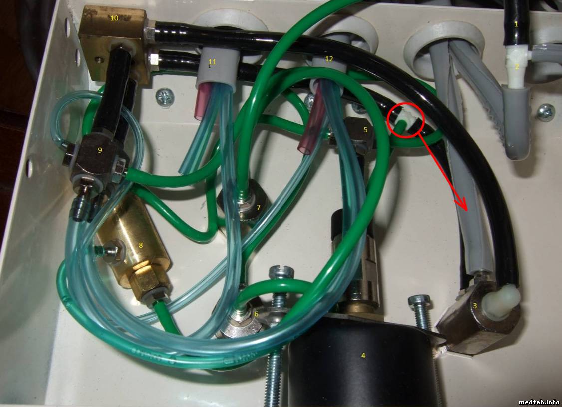 есть такой и для воды, тогда все просто. Нужно тройник который я на фото кружочком обозначил, нужно его убрать, соединить эту трубку чтобы она была без разрыва, а тройник поставить в разрыв шланга от педали, тогда когда нажимаем на педаль, воздух пойдет на реле и побежит вода, а вот воду сразу на инструмент пускать не нужно, а подать на переключатель типа номера 3 на схеме и когда переключаешь инструмент щелкать и его, поставить их рядом и всё...