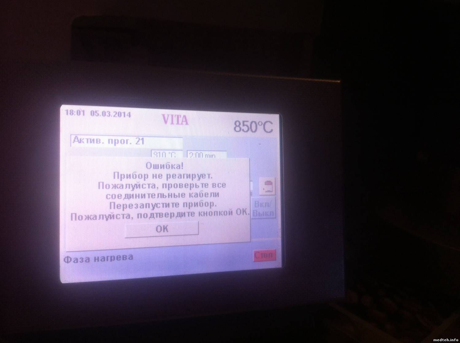 Коллеги , здравствуйте! печь vita vacuumat 40t с сенсорным блоком управления. уже старенькая. ушатывается в хвост и в гриву, как положено в госке. иногда подглючивала, но лечилась. внезапно, при включении выдала "ошибка! температура в камере выше 1200 градусов!". грешил на термопару, но ,вроде она норм; муфель звонится, видимых повреждений платы нет. может кто подскажет направление для копания? не прошивка ли это часом? заранее благодарен...