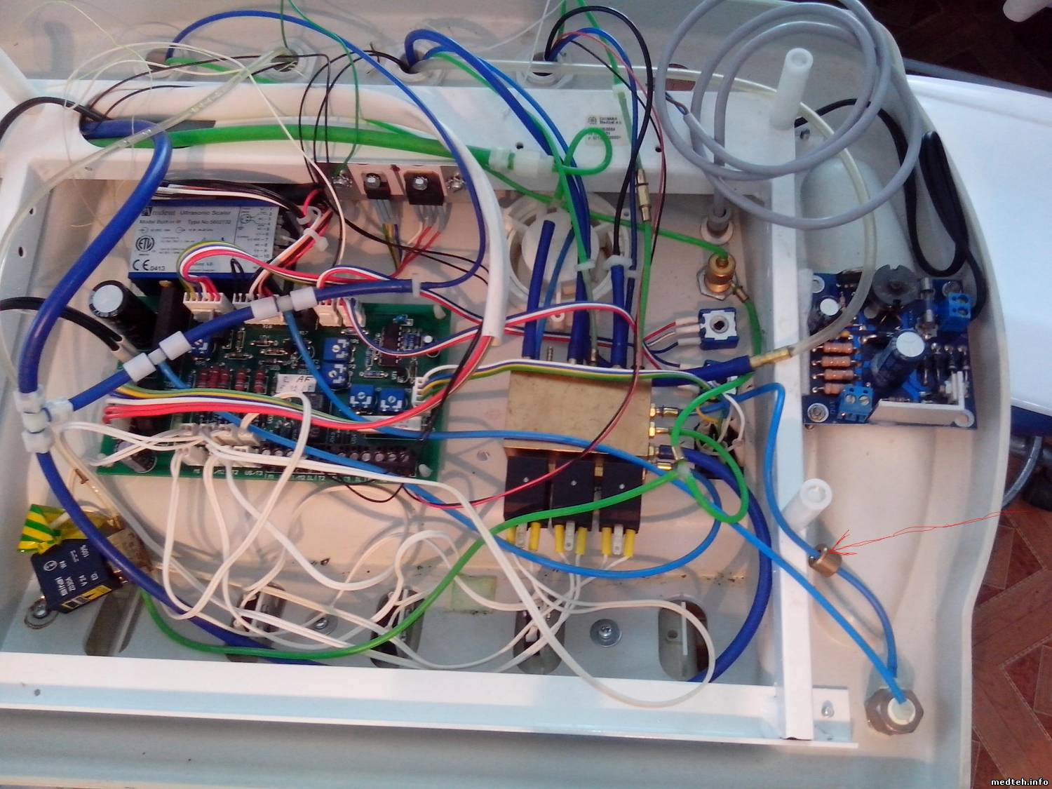 Установки de 170 в клинике две. Поэтому датчики с бутылкой поменял местами. Неисправность осталась. Грешу либо на сенсор, либо на клапан. К сожалению нет схем. Поэтому сложно.