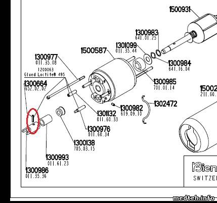 ,оптимальный вариант кусок иглы ,зажатый в иглодержателе. выбивается на разведённых в половину диаметра элемента 1300986 губках тисков, на 2/3 длины , потом вынимается кусачками. перед сборкой шпонка расширяется при помощи плоской отвёртки в просвет, и фиксируется секундным клеем. ремонтировать в кабинете врача не рекомендуется.