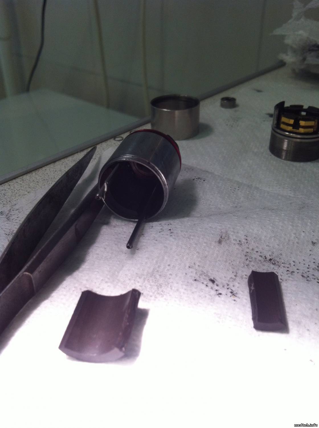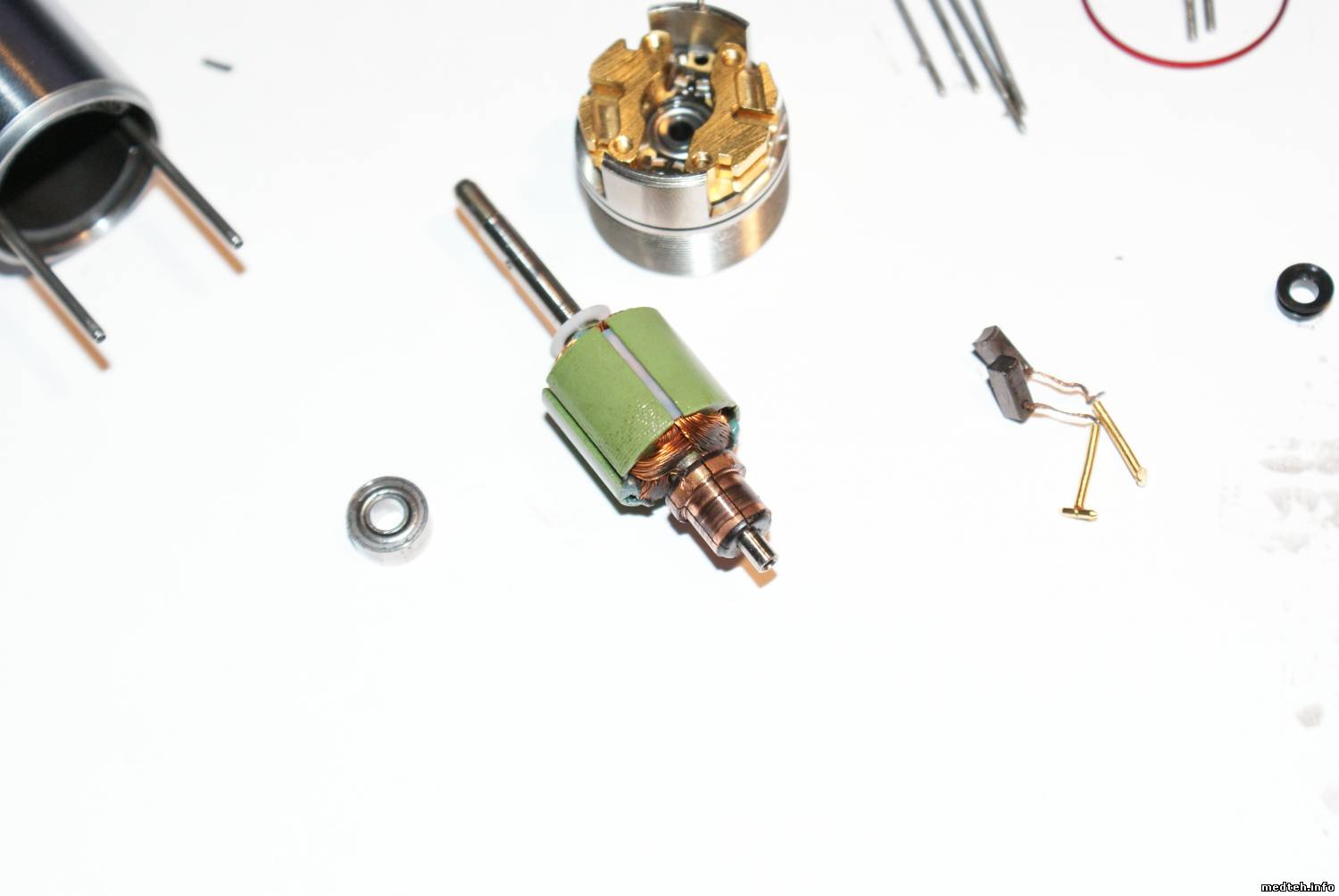 Были случаи эта втулка при работе сама вылетала (мотор работает, а наконечник нет) разумеется доктора в процессе выяснения, что произошло ее теряли. В этом случае брал кусочек ноги от резистора МЛТ-2 (парочка низкоомных всегда в чемодане) и запресовывал с двух сторон...