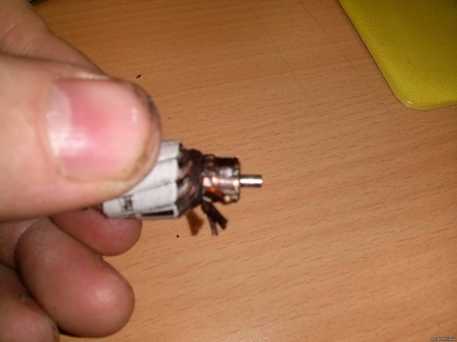 не только !, после смазки наконечников, деловые врачи по смоему сугубо личному мнению, ставят его тут же на MC-II, куда масло стекает ? ...... со временем щетки раскисают и внутри мотора столько щеточной пыли с маслом, что все это выглядит как грязь, кроме того она токо-проводящая, забивает напрочь щели ламелей на анкере, во время разбора использую самодельный инструмент плоский как лезвие прямоугольной формы, и выгребаю этот графит из щелей в анкере, ни разу за 17 лет ремонтов, не видел что бы у MC-II был пробой анкера, всегда забиты щели, видел изношенные в нуль контакты анкера .... !!! всегда проверяйте стоят ли на месте магниты, при разборе моторов, вечно вываливаются ибо роняют их постоянно !!!
