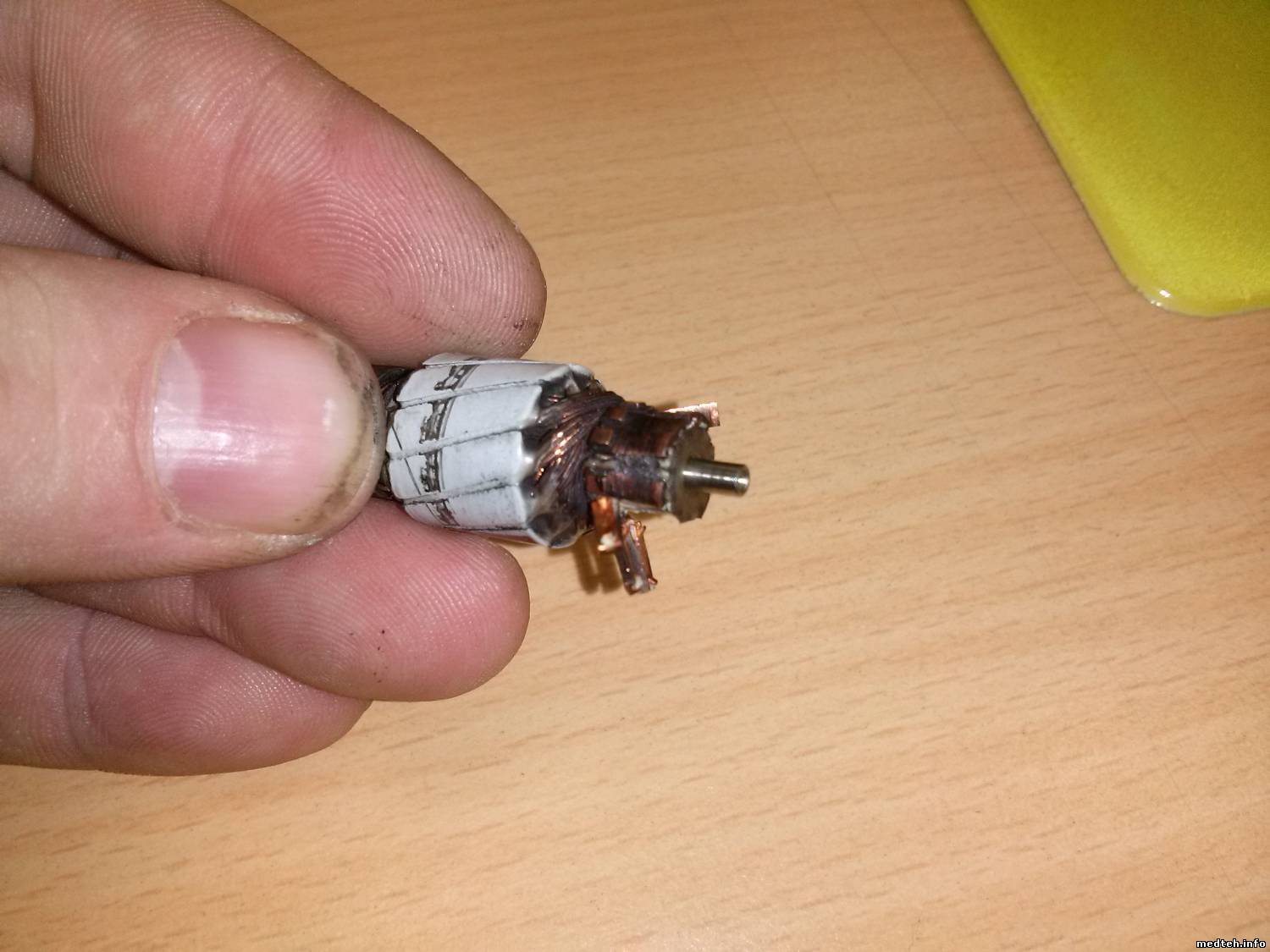 ужас ))) ..... Я такое видел на чешском моторе P2ED 460 ..... а причина, кривые наверное уже мозги одного умельца, вместо номинального напряжения 24 вольта подал на него все 40 вольт, причем как я при осмотре машинки увидел, была установлена самодельная плата управления, простенькая, но на нее подано было 36 вольт, видимо во время проверки, умелец проверил микромотор на полную напругу в 40 вольт, )))) и не успев даже нагреться у мотора анкер ромашкой развернулся ))))