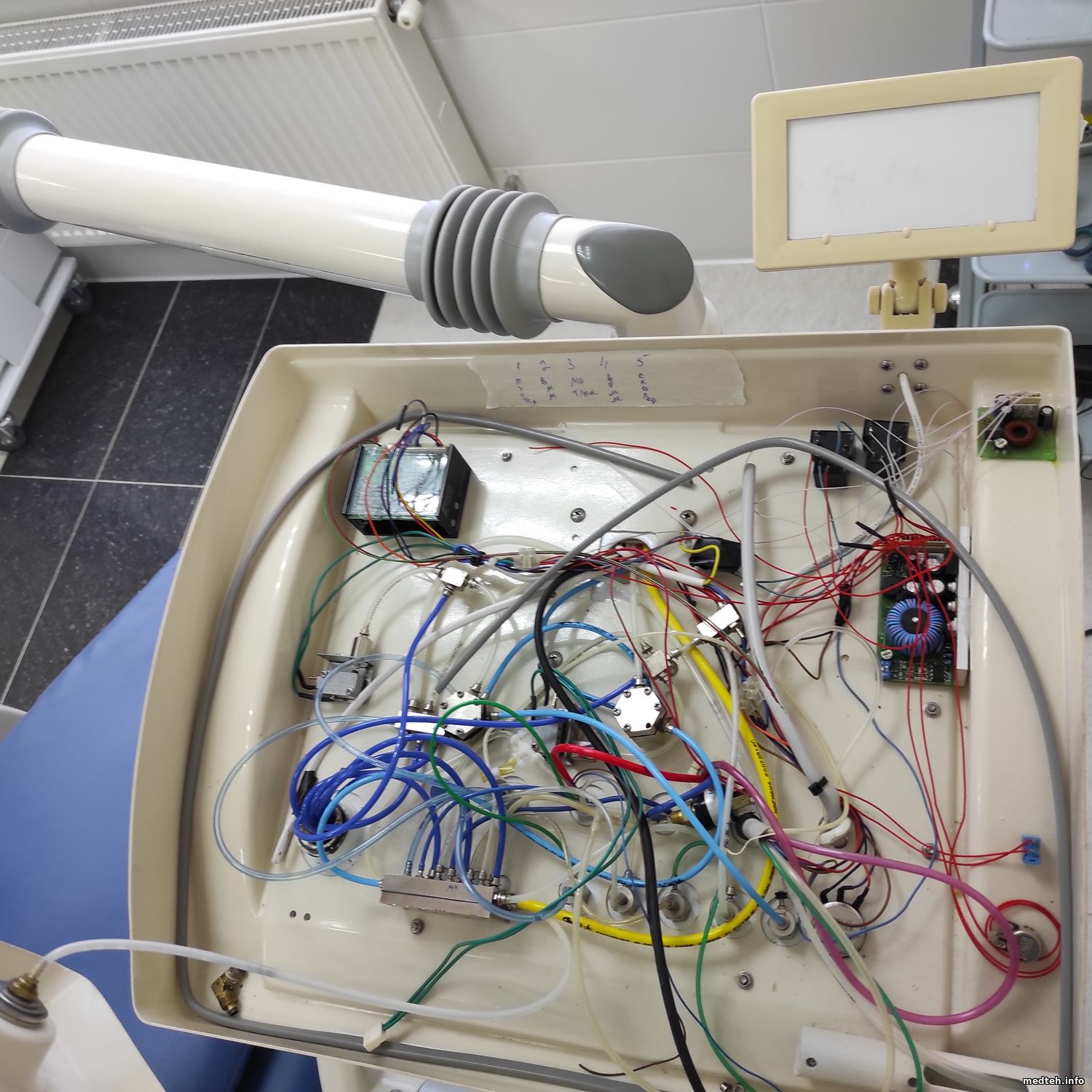 Доброго дня, товарищи. Здоровья Вам. Подскажите, пожалуйста, по встраиваемому скалеру Woodpecker UDS в установку Suntem D308: проблемы с пневматикой. Не идет вода на скалер, при нажатии на педали на клавишу воздуха пузырьки идут в бутылку, из помещенной в неё трубочки. До меня там трубки меняли, дважды приходили и что-то делали. Что сделал: проверил два шестигранных пневмоклапана и электро пневмоклапан - работают.